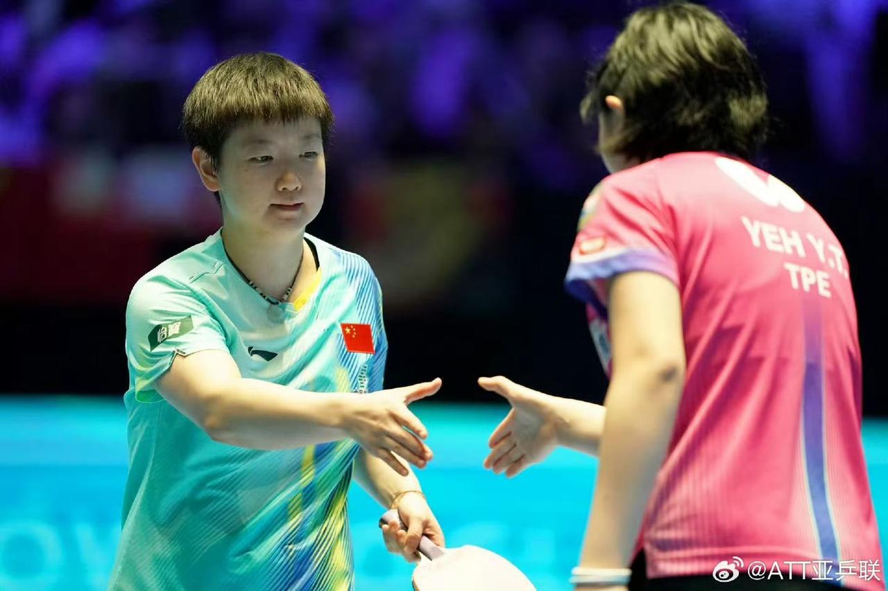 孙颖莎提前锁定一个女单十六强名额,亚洲杯女单小组赛,孙颖莎所在的第一小组因为叙利亚选手亨德·扎扎的退赛,第一小组实际只有三名选手,孙颖莎、玛尼卡·巴特拉和叶伊恬。 这样第一小组三名选手每人少打一场,昨天是印度选手玛尼卡·巴特拉休赛,今天是叶伊恬休赛,明天是孙颖莎休赛,第一小组就看玛尼卡·巴特拉和叶伊恬明天的比赛,谁胜了就是谁跟孙颖莎一起晋级淘汰赛。 印度选手巴特拉是一名赛场经验丰富的选手,叶伊恬则是一名来自中国台北的一名非常年轻的小将,从赛场经验和世界排名以及实力来说印度选手巴特拉更具优势,希望小将叶伊恬努力打出自己的实力,赛场一切皆有可能。