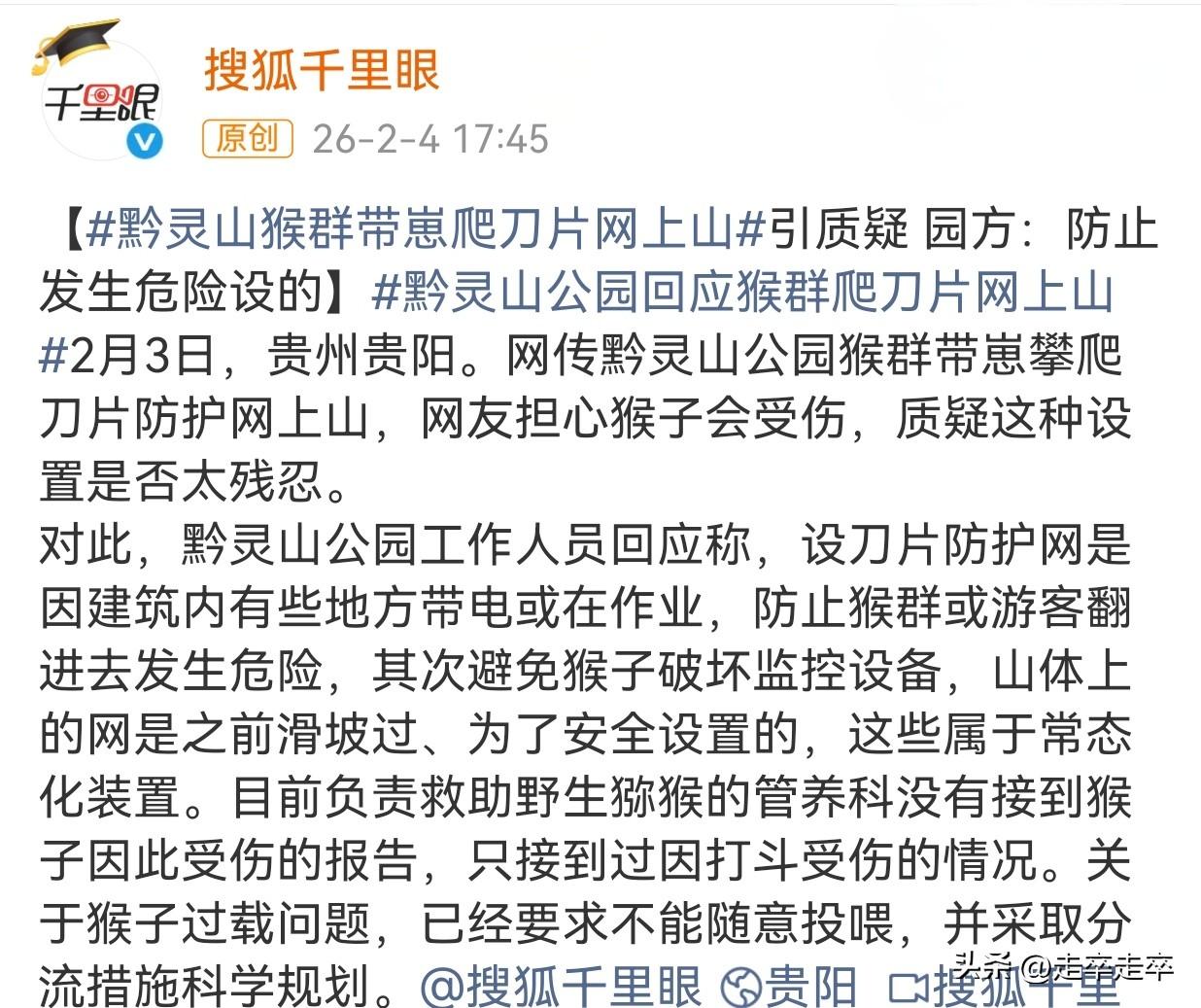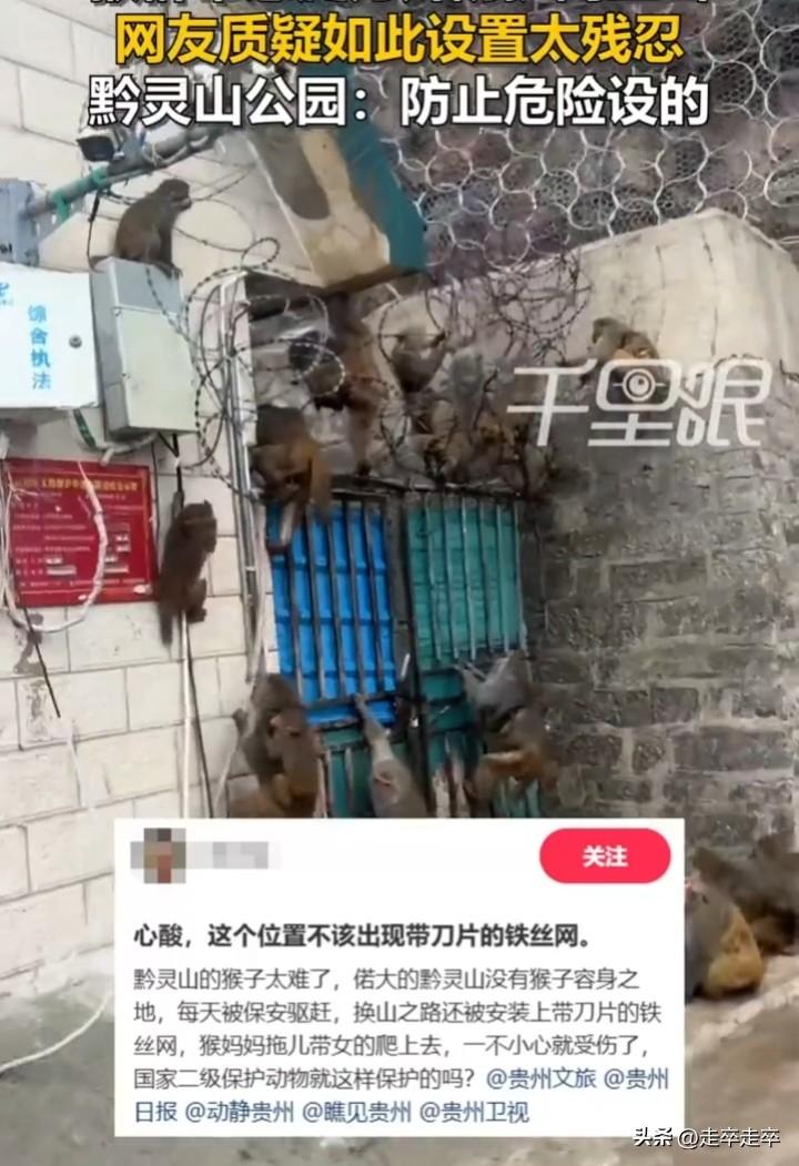 圣母真多🤬😕 根据2月4号的报道,有人投诉了黔灵山公园管理处。理由是黔灵山公园猴群带幼崽攀爬带刀片防护网。 要知道公园只在三个关键区域安装带刀片防护网①内部存在带电设备或施工区域。②此前因猴群攀爬植被破坏,导致出现了地质灾害区域。③避免猴群破坏,为了安全保卫而安装障摄像头等设施区域。 黔灵山猕猴数量已远超生态承载力(理想值约120只,实际超1200只)由此引发了猴群集体下山觅食(25年11月大规模下山事件),甚至闯入居民区。且19年至今,年均超千起猕猴抓伤游客、抢夺物品的问题。为了人身的安全和财产安全难道不应该有这些保卫措施吗? 还有些人冒充老辈子,说黔灵山猕猴是原生种大牙都给我笑掉了,这些猴子都是90年代医学院的实验用猴逃脱后才在黔灵山安家落户的。圣母们是要看到猴子因为各种原因受伤了,又开始喷景区为什么没有拉防护网。这些圣母们真没脑子,以为猴子和他们一样明知道是刀片,吃了一次亏还会继续爬。其实他们智商根本不如这些猴子,猴子吃一次亏,下次就会小心,慢慢就形成条件反射,看到类似的东西就不去攀爬了。黔灵山看猴 黔灵山猴群