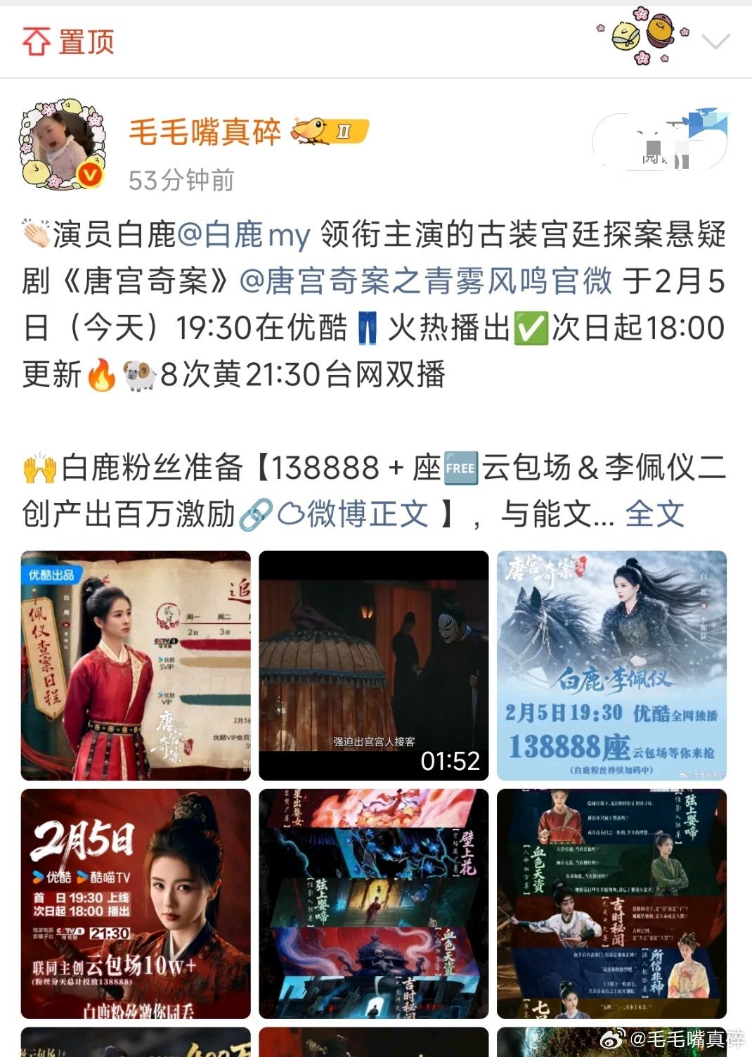 毛毛每天主页来看我的都一万+了对白鹿够不够意思期待白鹿唐宫奇案