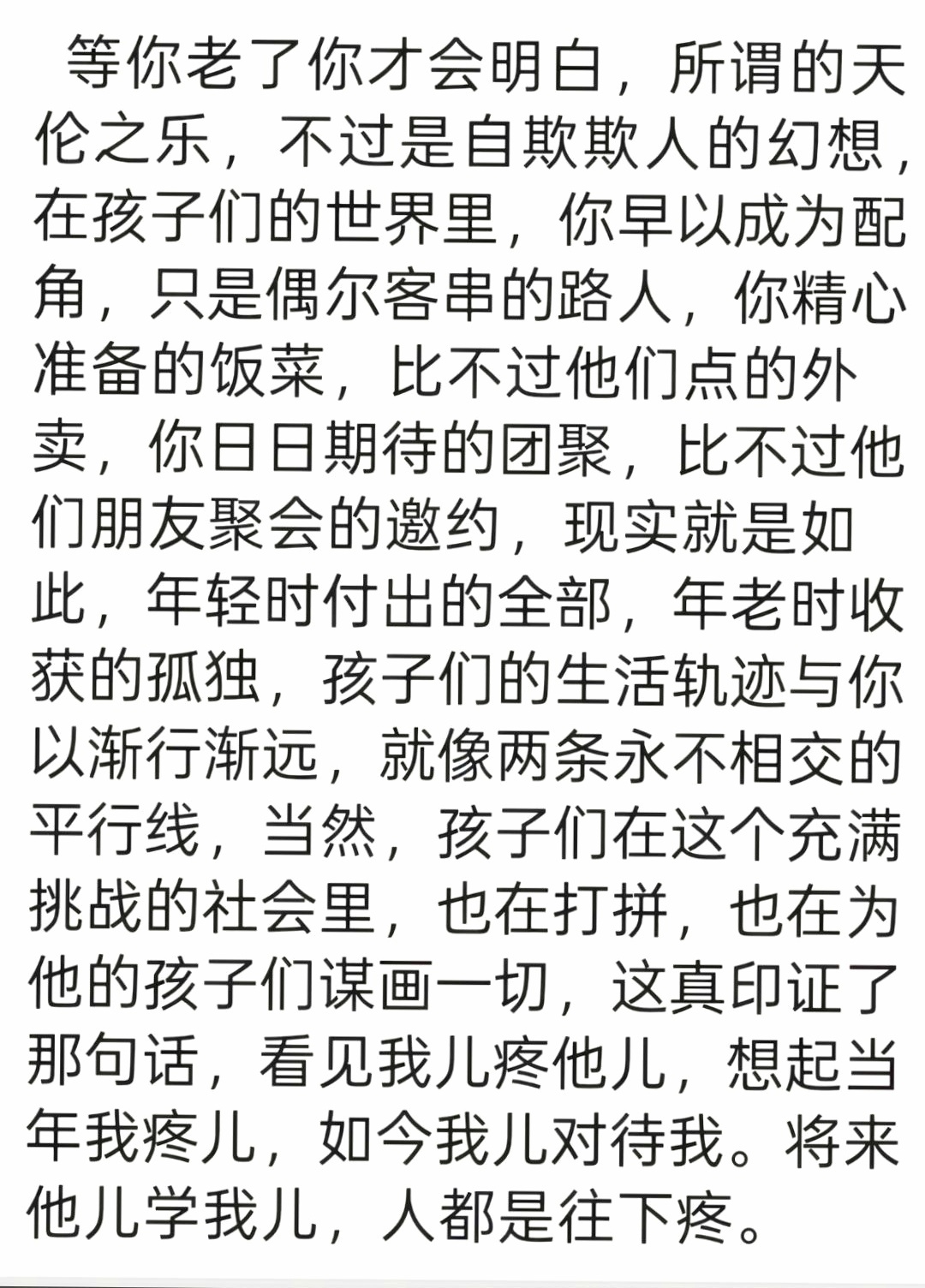 只要别有期待,孩子将来不啃老,就不会失望了,孤独本是常态