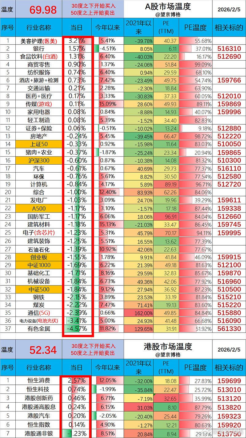 ETF账户今日亏损0.6万(资产260万);基金账户今日预估亏损4.0万(资产550万);两个账户合计亏损4.6万,盈亏比例-0.58%周一亏损25万,周二盈利10.2万,周三盈利1.6万,周四盈亏4.6万,本周依旧亏损17.8万。现在唯一期望就是本周不亏钱A股今天69.98度,相比上一个交易日降低0.7度;港股今天52.34度,相比上一个交易日上升1.2度;大家今天盈亏如何?可以聊聊一起抱团取暖~欢迎留言~感谢点赞与点爱心~