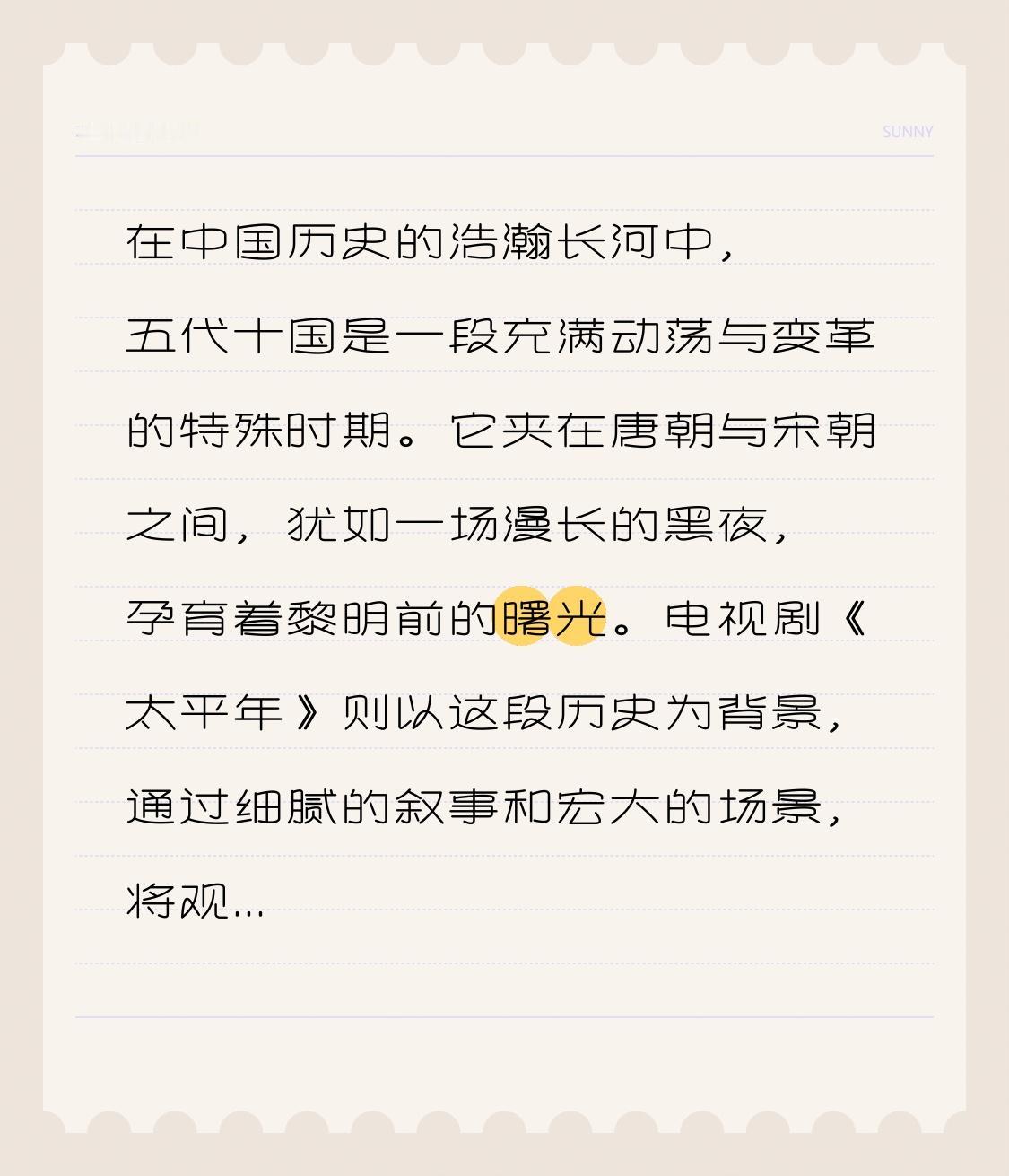 《太平年》,一部揭开五代十国乱世帷幕的史诗巨制 深蛙 在中国历史的浩瀚长河中,五代十国是一段充满动荡与变革的特殊时期。它夹在唐朝与宋朝之间,犹如一场漫长的黑夜,孕育着黎明前的曙光。 电视剧《太平年》则以这段历史为背景,通过细腻的叙事和宏大的场景,将观众带入那个风云变幻的时代,感受历史的厚重与人物的悲欢。 五代十国,并非一个统一的整体,而是由中原的五个短命王朝(后梁、后唐、后晋、后汉、后周)与周边十多个割据政权共同构成的复杂格局。 五代更迭如走马灯,53年间换了14位皇帝,平均每位皇帝在位不足四年,其动荡程度可见一斑。 而十国则如散落的珍珠,分布在江南、巴蜀、岭南等地,各自为政,形成了一幅“你方唱罢我登场”的历史画卷。 五代风云,就是从朱温篡唐到赵匡胤建宋,简要述说一下五代,五代是纵轴,是前后顺序,按照时间表陆陆续续展开的。 五代首先是后梁。朱温篡唐建立后梁,却因荒淫残暴、私通儿媳被儿子弑杀,后梁迅速陷入内乱,最终被李存勖灭国。 其次是后唐。李存勖虽勇猛善战,却痴迷唱戏,宠幸戏子,最终死于叛乱。其后继者李嗣源、李从珂等亦难逃短命命运。 再次是后晋。石敬瑭为称帝,竟将燕云十六州割让给契丹,并认契丹皇帝为父,甘当“儿皇帝”。此举虽换得一时政权,却为后世埋下百年隐患。 然后是后汉。刘知远趁契丹撤军之际建立后汉,但仅存三年便被郭威取代。 再然后是后周。郭威勤政爱民,传位给养子柴荣。柴荣被誉为“五代第一明君”,他励精图治,南征北战,几乎收复燕云十六州,却因英年早逝未能完成统一大业。最终,赵匡胤通过“陈桥兵变”建立宋朝,终结了五代的乱世。 十国从南唐风雅到吴越富庶,是历史上的割据政权,时间上有重叠、有交叉,大致上相当于不完全的并列关系。 十国之中,南唐以文治著称,末代君主李煜虽治国无方,却以词作闻名千古,被誉为“千古第一词帝”;南汉则以奇葩治国闻名,刘岩定下“当官必先自宫”的规矩,导致朝堂之上宦官横行;而吴越国则以其独特的生存智慧,成为十国中的一股清流。 在五代十国的纷争中,吴越国以其“保境安民”的国策,成为一片难得的世外桃源。其开国君主钱镠深知中原王朝的强大,因此选择向中原称臣,不参与争霸,而是专注发展经济、文化。在他的治理下,吴越国社会安定,经济繁荣,百姓安居乐业,被誉为“东南形胜,三吴都会”。 吴越国的末代君主钱弘俶,面对赵匡胤的统一大业,做出了一个影响深远的决定——纳土归宋。他放弃王位,将吴越国的13州、1郡、86县全部献给宋朝,使富庶的江南地区免于战火,百姓得以安居乐业。这一举动不仅体现了钱弘俶的远见卓识,更彰显了中华一统的历史大势。 正如剧中所述:“民族大义面前,个人权势、家族利益都要为中华一统让步。” 电视剧《太平年》以五代十国为背景,通过讲述钱弘俶纳土归宋的故事,展现了那个时代的风云变幻与人物命运。剧中不仅还原了历史场景,更深入挖掘了人物内心的挣扎与抉择,让观众在感受历史厚重的同时,也能体会到家国情怀的伟大与崇高。 值得一提的是,吴越钱氏家族在历史上留下了浓墨重彩的一笔。从钱镠到钱弘俶,再到近代的钱学森、钱伟长、钱钟书、钱玄同等杰出人物,钱氏家族以家族之力守护国家太平,培养出了无数栋梁之才。他们的事迹告诉我们:真正的世家,不是靠权势炫耀,而是以家族之力为国家、为民族贡献力量。 《太平年》不仅是一部历史剧,更是一部关于家国情怀、民族大义的史诗巨制。它让我们在回顾历史的同时,也能思考当下与未来。在这个充满变革与挑战的时代,我们更需要像钱弘俶那样具有远见卓识的领导者,更需要像吴越钱氏那样以家族之力守护国家太平的杰出人物。 让我们共同期待《太平年》的播出,一起感受那段波澜壮阔的历史吧!