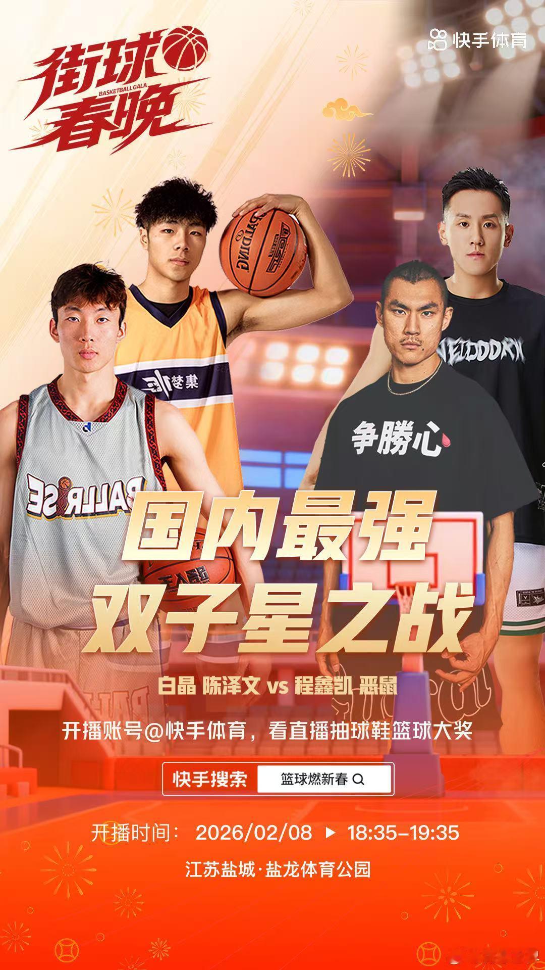 长草期不缺热血,篮球盛宴从不缺席,快手街球春晚2.7-2.8精彩来袭!周楷恒、吴勇豪、威姆斯、恶鼠、程鑫凯等一众街球顶流齐聚一堂,巅峰碰撞,强强对话,每一秒都血脉偾张。上快手锁定街球春晚,看直播赢球鞋大奖,惊喜福利等着你!