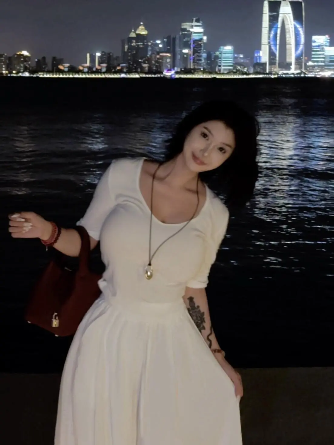 穿搭 夜景 海边 长裙