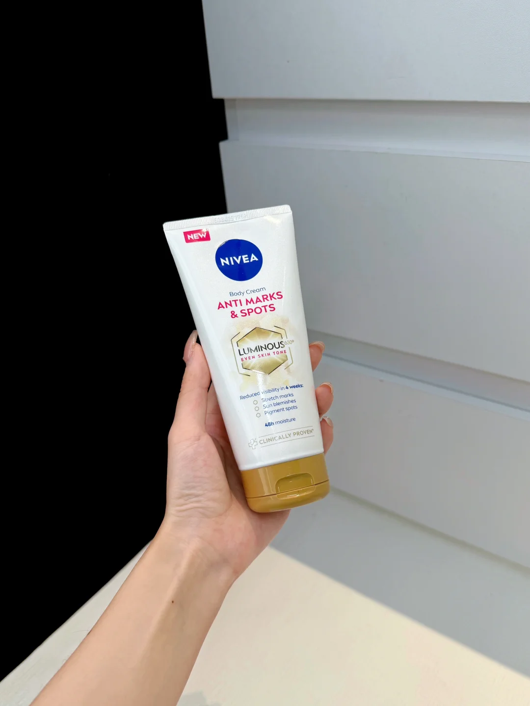 夏天穿裙子玩的是嗨,结果晒的胳膊腿黑白分层超明显,手肘膝盖还暗沉发黑,像蹭了灰洗都洗不掉,一整个肤色斑驳感!秋冬干皮雪上加霜,一脱裤子那皮肤干成东非大裂谷,一碰简直雪花飞舞,想美白保湿愣是找不着合适的! 直到我挖到了这款在海外早就爆火到断货的宝藏--妮维雅630身体乳!!不愧是国外博主强推的,真的很好用!很润还不油!涂一次能水润48小时,腿上再也不起白屑,摸起来软乎乎的,涂完立马钻被窝也不会粘被子,还带着淡淡的清香特舒服。 而且更是用了它家脸部精华同款美白成分啊姐妹们~核心成分提安明多®630能从根源抑黑,直接截断黑色素生产线,美白效果杠杠滴!难怪在国外卖疯了 现在夏天的晒黑分层印肉眼可见淡了,手肘膝盖的暗沉也匀净了,皮肤是那种由内而外的透亮感! 真心推荐给所有想美白又怕黏腻的姐妹!这款海外口碑已经炸裂的好物,性价比直接拉满,闭眼冲不亏!