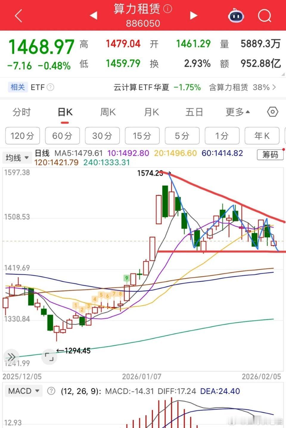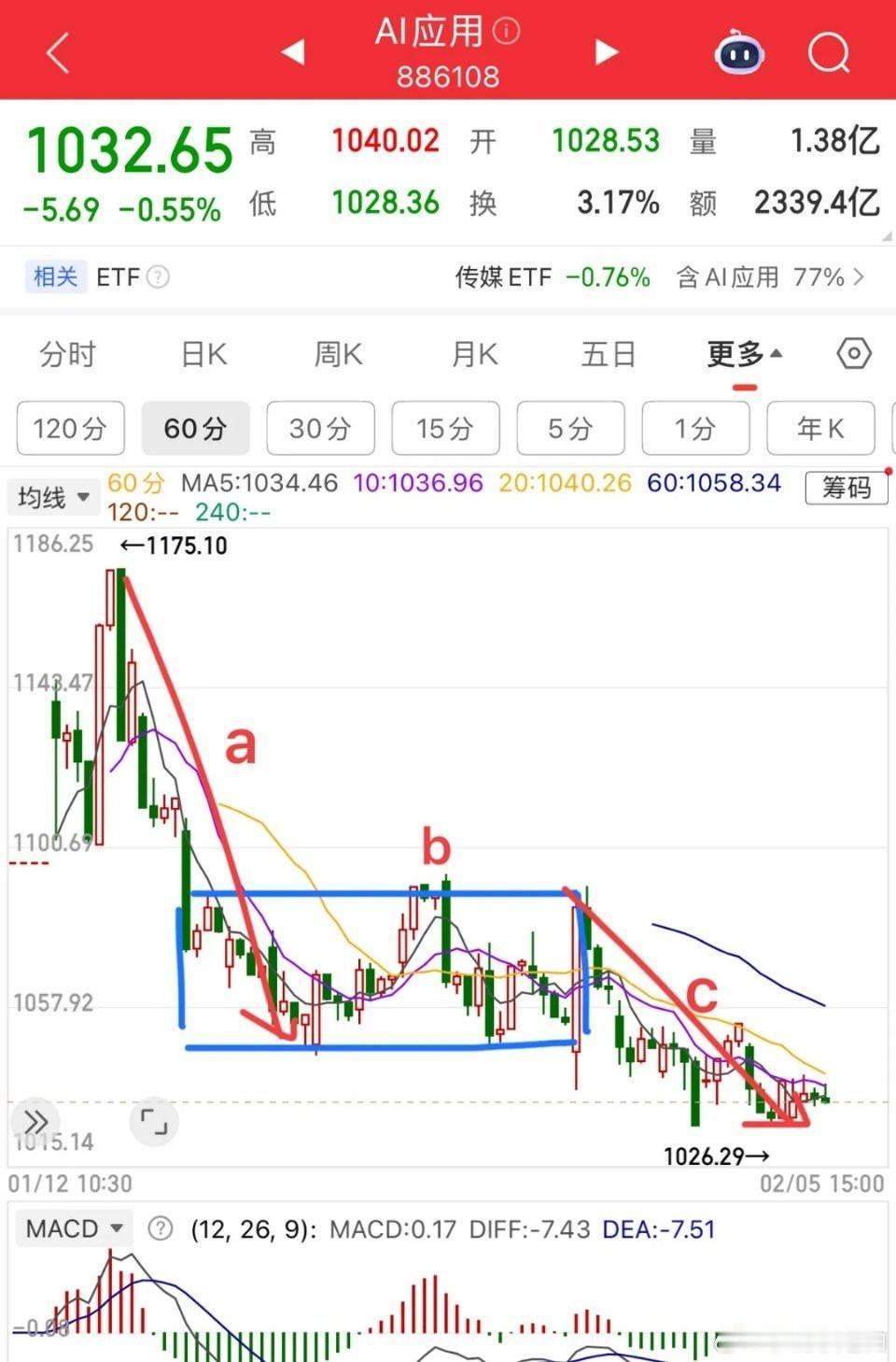 2026.2.5周四收评: 反复震荡,要有点耐心! 周四大盘个股又是普跌的一天,成交量大幅缩小至2.1万亿,存量博弈的市场,只有局部性机会,所以这几天操作难度还是比较的,这也是一直给大家讲的这种分化快速轮动的行情大概率会一直延续到春节前后。不过大家也不要过度担忧,需要点耐心等待,最近个股一直调整反而给了一些空间,春节前也就是下周反而会有红包行情,这个概率在增加。指数方面向下的空间不会很大,不要怕,60日线附近有强支撑(60日线支撑预期,下周会拐头),所以指数如果往下走,找机会就可以。 技术面看,上证指数上方还是存在5/10/20日线压力,一次性突破概率很小,想要扭转均线的方向,需要反复震荡才有可能,所以当下需要点时间折腾。还是那句话往上不追,往下不怕。 板块方面: 《商业航天》下跌通道运行,回到通道下轨支撑寻求机会。 《AI应用》abc调整形态,c段下跌力度减缓,60分钟如果能够金叉成功,就有触发底背离条件。 《算力租赁》收敛形态末端,等待方向选择。 关注每个交易日开盘15分钟早评! 个人观点,仅供参考!