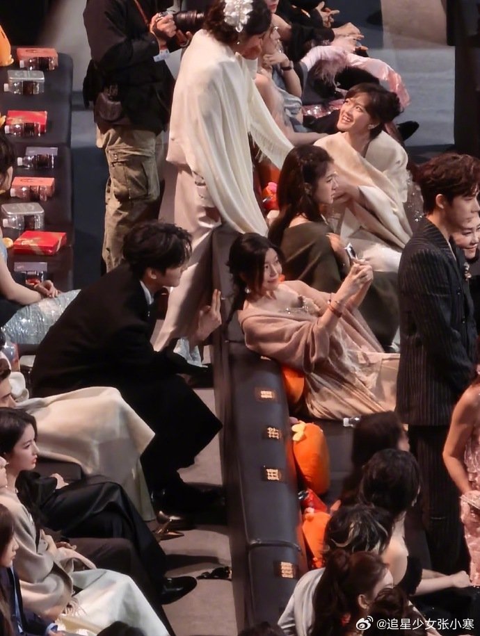 张天爱跟素人合影,胯真的好宽,大宅院似的