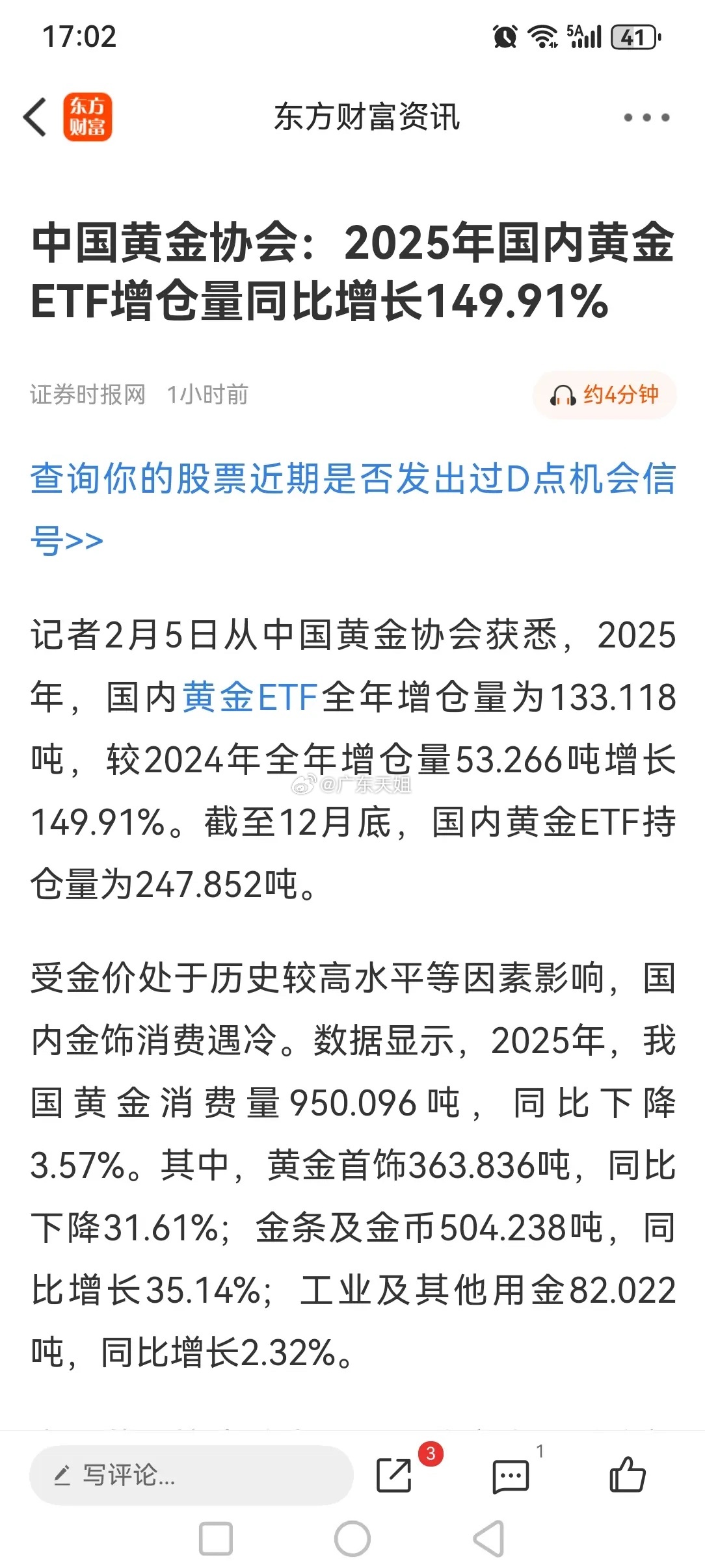 盘后市场传来三大重要消息,或影响明天A股相关走势。消息一,今日港股三大指数集体迎来上涨,其中恒生科技指数上涨0.74%。恒生科技指数结束5连跌,或积极影响A股相关走势。消息二,有关门印发了《中药工业高质量发展实施方案(2026—2030年)》。这有助于带动中药产业链发展,有助于促进中药工业科学发展,有助于提升中药影响力。消息三,据中国黄金协会消息称,2025年国内黄金ETF增仓量同比增长149.91%。这反映该年投资者投资黄金ETF热情高涨。对此你们怎么看?