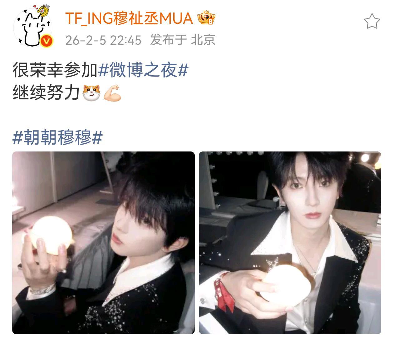 穆祉丞微博之夜后营业:继续努力