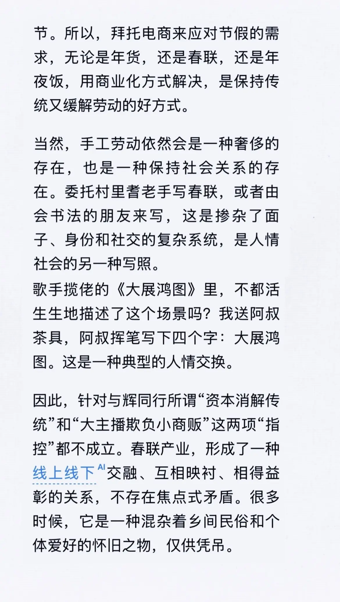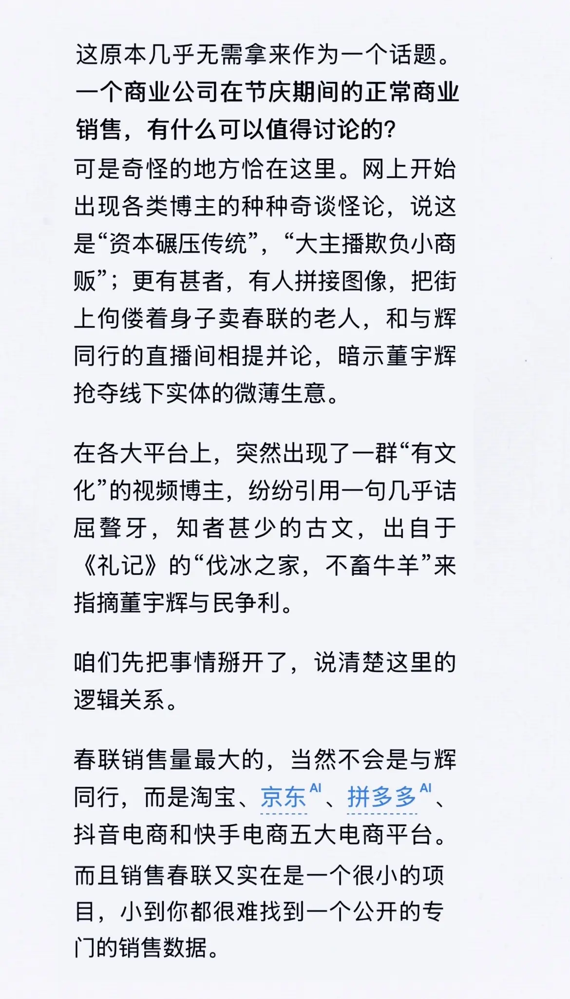 董宇辉卖春联到底是动了谁的蛋糕?这是2月6号当天南方都市报发表的一篇文章。在这