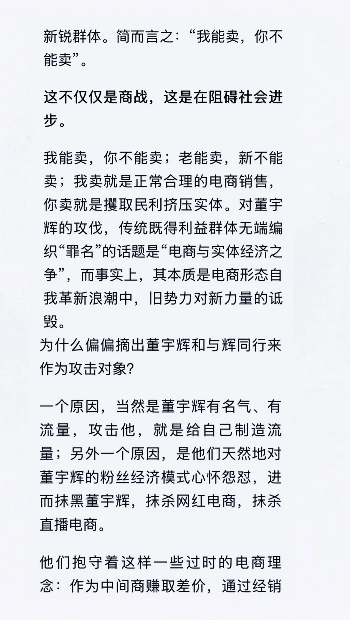 抹黑董宇辉和与辉同行,制造新兴商业与社会之间的矛盾,故意把一个完全正当...