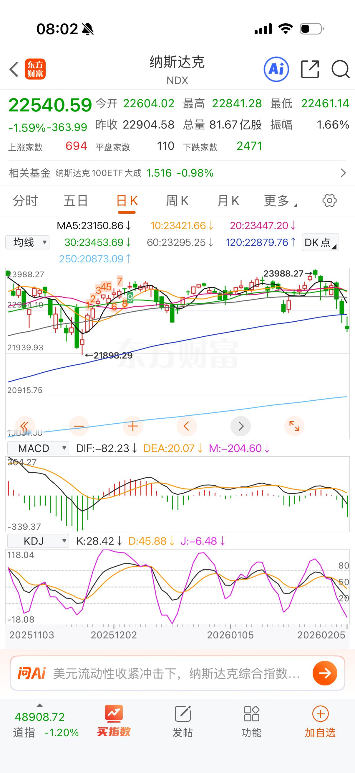 纳指击穿半年线,小纳指开盘又大跌。
