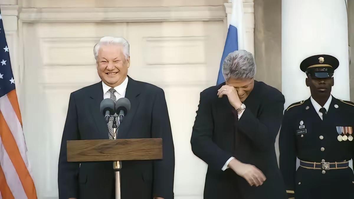 最应该让历史记住的苏联最著名的一组照片 其中8张十分著名的历史照片,都和叶利钦有关。 第一张:叶利钦霸气的对着戈尔巴乔夫指手画脚,并命令他该怎么做。这也是苏联正式解体的一大象征性照片,照片中叶利钦严肃且权威,此时的他,已经掌控了俄罗斯的至高权力。 第二张:叶利钦访美时回答记者提问时,把旁边的克林顿笑得前俯后仰,而此时的叶利钦,则尴尬的陪笑着。 时代造就了大人物,而大人物又左右着时代。但有时候,面对时代的滚滚潮流,其实大人物也有他的无奈。美国没费一枪一弹就把苏联击垮了,全是叶利钦的功劳。克林顿应授予叶利钦金质自由勋章。就是叶利钦把戈尔巴乔夫搞下台的,他确实是解散苏联的第一打手。 1995年叶利钦和克林顿在纽约联合国总部会面,当时叶利钦很紧张,希望能争取得到克林顿的支持。但是在谈话过程中,叶利钦用英语发表讲时,因为自己英语不太好,口误说错了一句“you ' re a disaster ”。美国人说“disaster ”时往是自嘲,如果说别人,则是挖苦和嘲讽。 所以克林顿听到的叶利钦的话意思是,叶利钦在嘲讽记者:“你说我们的会面是灾难,你就是个傻子!”克林顿认为叶利钦是在和记者开玩笑﹣﹣记者说美俄会谈是灾难,叶利钦说“谁说是灾难,谁就是傻子!”于是克林顿拍了拍叶利钦的肩,对记者笑着说:“Just make sure you get the attribution right ,”(只要确保你归类正确。)意思是说:叶利钦总统说记者是个傻子,只要记者确认自己是被正确归入傻子的行列,我没意见。这就是克林顿笑场的原因。 不过,对于叶利钦来讲,他则是一头雾水。他既不知道克林顿突然因何发笑,也不知道克林顿说出最后一句话究竟是什么意思,于是略显尴尬的进行陪笑,显得异常的笨拙和别扭。虽然被以讹传讹成克林顿戏弄叶利钦,但是确实很符合这个谣言。 好像是叶利钦说的英语涉及到一个谐音梗,克林顿是平民家庭出来的,按老北京话讲是胡同串子出身,知道很多比较粗俗的俚语谐音梗。叶利钦的母语不是英语,正规英语里根本就没有笑点。在场的老美由于克林顿笑场了也都明白了是怎么回事,也就跟着笑了。但是这个谐音梗可能太粗俗不能拿出来明说,克林顿就只好说自己也不知道为什么笑。 为何发笑呢?原来叶利钦说道:“昨天有报纸报道说,今天的美俄会谈是场灾难。我可以第一时间告诉你们,这将会是你们媒体的灾难!” 听了这话,克林顿立即情不自禁,放声大笑,笑得前仰后合,并激动得流出了眼泪,持续了两分钟之久。台下的议员们也大笑不止,笑声在国会大厦的穹苍般空间回荡。克林顿当然对叶利钦的话比较赞同。他看到叶利钦在不知所措地傻笑,自己爆笑之后便机智地说:“哪家报纸说我们的会谈是场灾难?找出来,我一定要看看!” 克林顿说完后,又是一阵哄堂大笑!有在场的人事后问克林顿为何这么高兴。克林顿说:“我也不知道为何这么高兴。我就是忍不住大笑了。” 作为美国近50年最主要敌人的强大苏联,美国不费一枪一炮,就被戈尔巴乔夫和叶利钦搞垮了,解体了;全世界第一个马列主义政党苏联被解散了。而且,叶利钦还亲自到美国国会,低三下四地夸耀美国,卑躬屈节地向美国献媚。 最后一张是叶利钦让戈尔巴乔夫宣布苏联解体的照片,戈尔巴乔夫已经身不由己成了傀儡,叶利钦也中了美国的毒计,一心想把苏联解体。