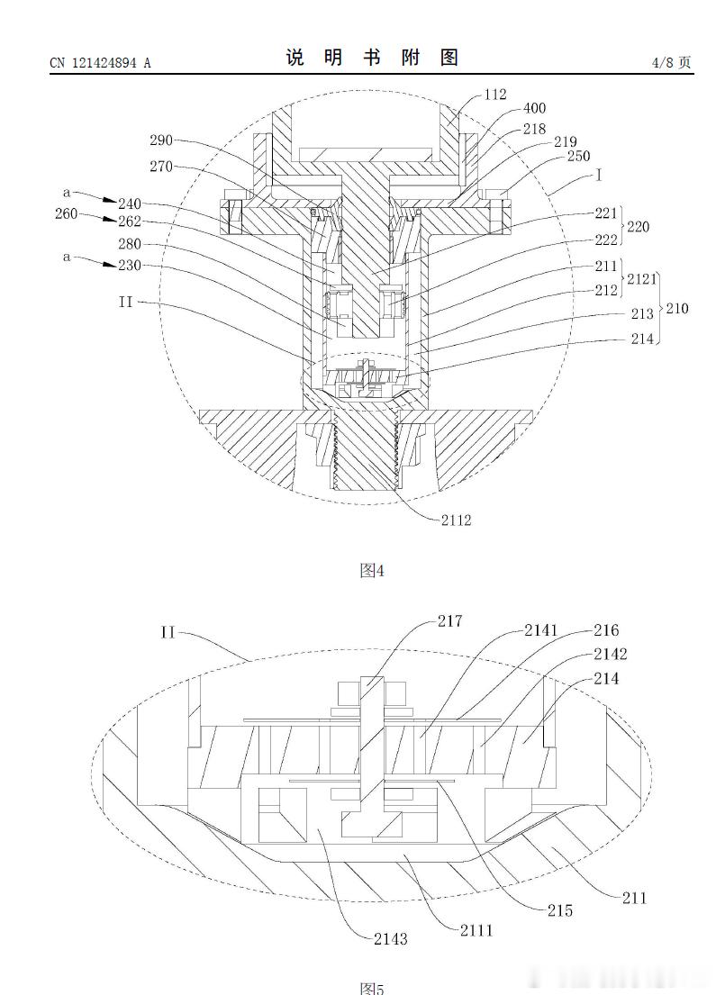 第二段阻尼器,可以是双筒、单筒,甚至磁流变阻尼器。实施例里重点讲了双筒:内筒里活塞头把内腔分成两个腔室,外筒与内筒之间是外腔,底阀在压力作用下连通腔室与外腔,让油液流动、补偿体积变化,保证阻尼稳定---就是把传统减振器那套成熟的“能量耗散机制”给搬进来了,拿它去吃掉高频能量。