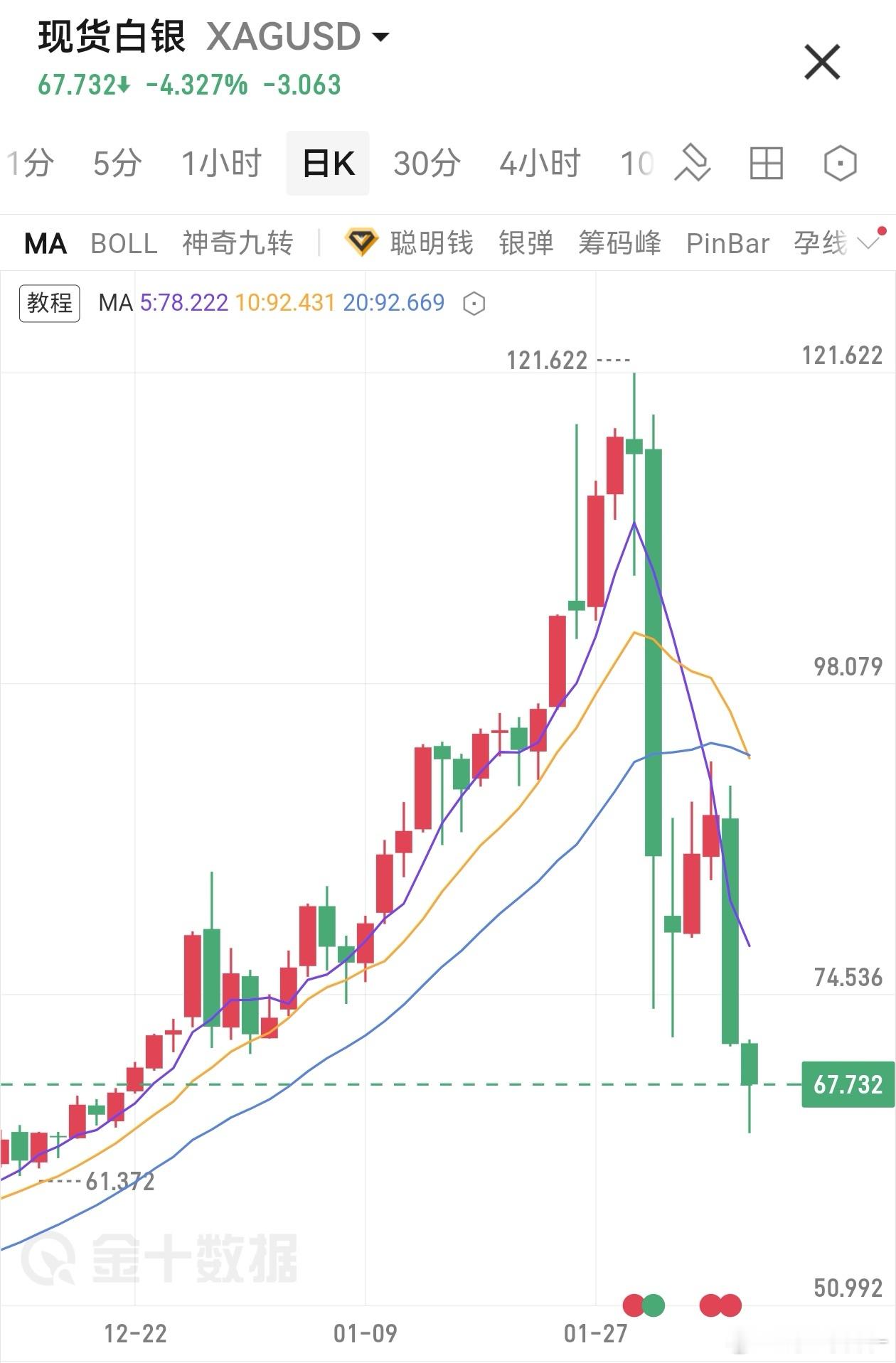 最低64美元一线,短短几个交易日,白银差点腰斩。上涨小碎步,下跌断魂刀…期货