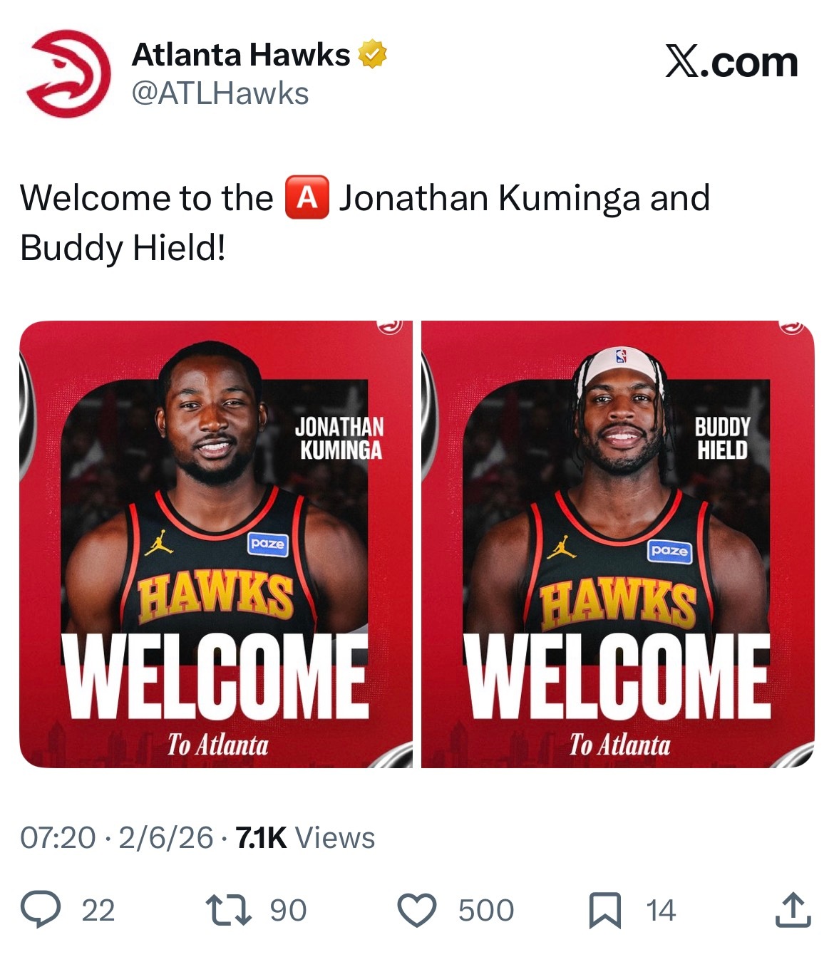 老鹰官宣库明加和希尔德加盟