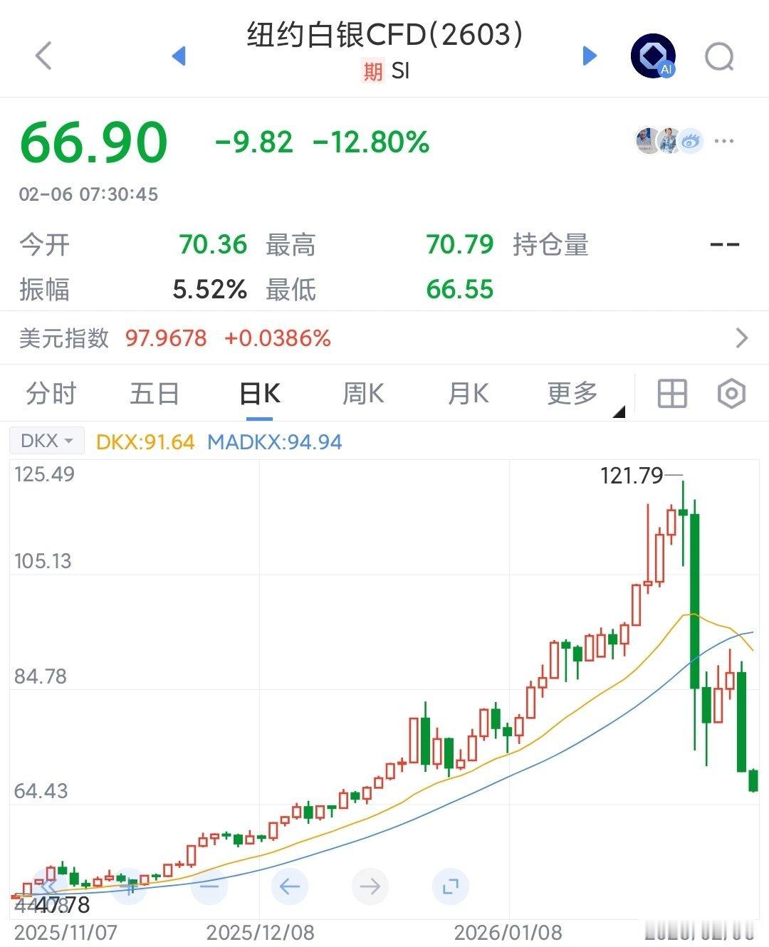 白银和比特币,加杠杆炒作赌博的多,波动就更大。白银明显超涨,我都觉得不对劲。现在华尔街唱空到50,之前唱多到200、300的都出来了。涨跌都不正常,是杀空头再杀多头的恐怖走势。资金被抓住逼空,暴涨;然后又被抓住逼多,暴跌。
