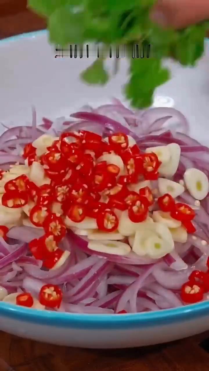 凉拌洋葱。 我告诉你,多数人做凉拌洋葱的时候第一步就放盐,那就大错特错了。今天我只需十秒钟教你凉拌洋葱最好吃凉拌做法。 ·首先树上摘的洋葱用我这个手法切成细丝,再放到碗里抖散。 ·再放一大勺白糖,白糖能去除洋葱的辛辣味,还能使洋葱更加清甜爽口。 ·然后用清水清洗干净,这时候碗里打一个鸡蛋搅匀。 ·洋葱沥干水分后,加蒜片、小米辣、香菜、烫熟的木耳、88粒花生。 ·调味加盐、鸡精、生抽、陈醋,有条件的放点香油,翻拌均匀即可开吃。 凉拌洋葱这样做清脆爽口,越吃越想吃。 喜欢你就赶紧收藏做起来吧!