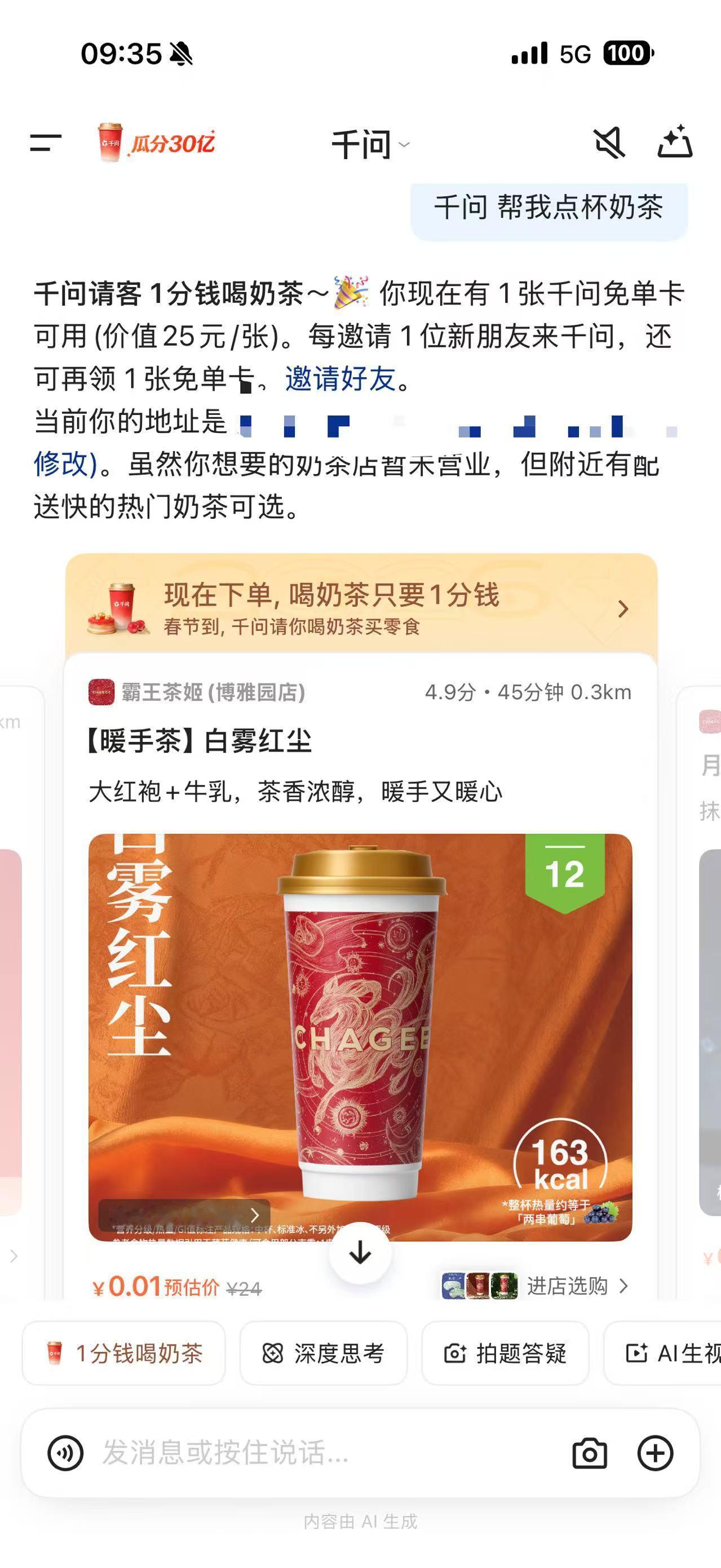 家人们谁懂啊!终于被我挖到点奶茶的终极省钱密码了——直接白嫖喝到爽!千问免单千问这波过年福利也太豪横了吧!直接砸出30亿请大家吃喝玩乐,这羊毛不薅简直亏大了!我先冲为敬,现在赶紧去下载千问,给自己安排一杯想喝好久的奶茶,快乐直接拉满!为了让更多宝子一起实现奶茶自由,我也来加码宠粉一波👇评论区揪 5位幸运宝宝,你点任意一杯奶茶,我来买单!不管是加珍珠还是加奶盖,全都安排上!