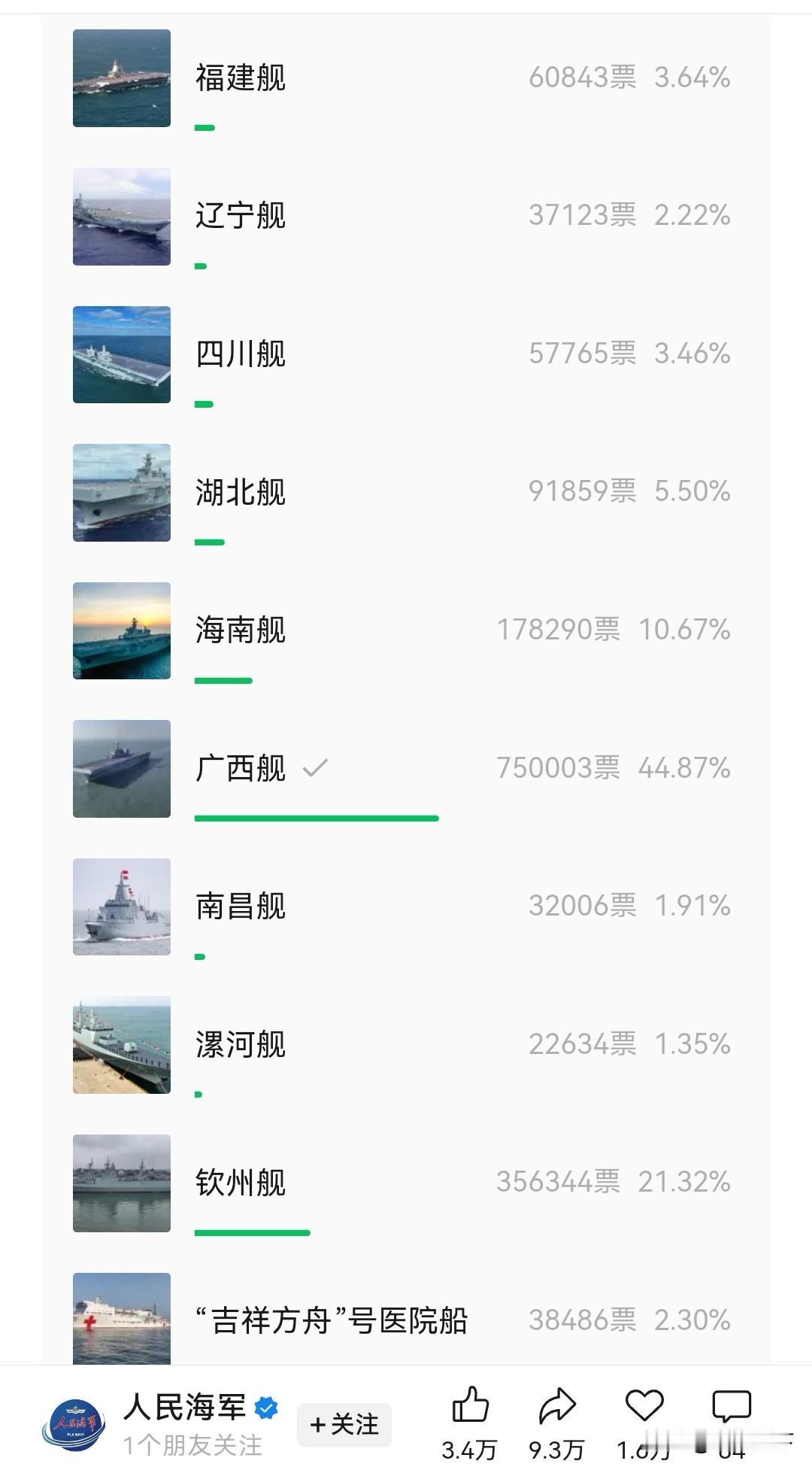 华南F3的含金量还在上升,人民海军发起投票,选7艘舰艇从大年初一到大年初七依次给