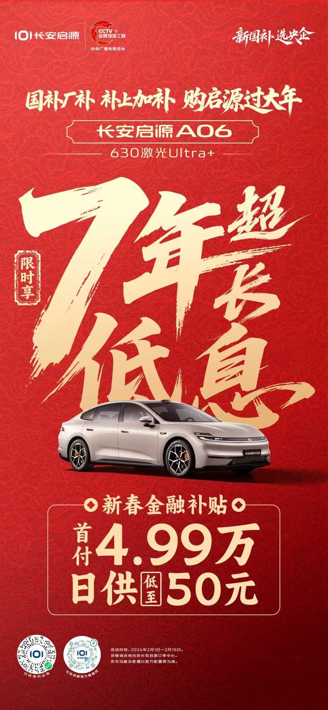 国补厂补 补上加补 购启源过大年超长贷、低首付,日供低至50元🎆新年开新车 金融加码 轻松上车!🚗
