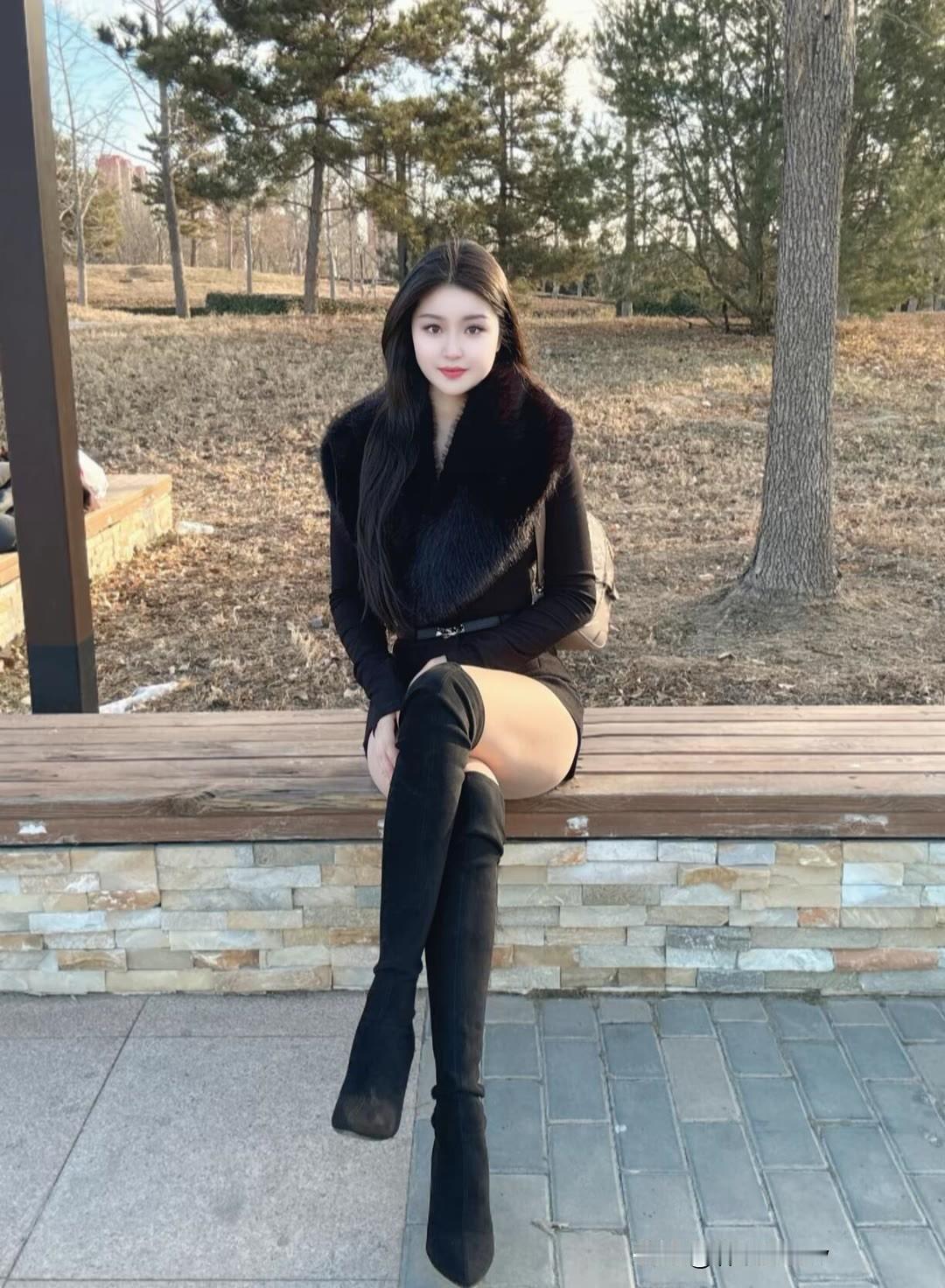 冬日穿搭指南:黑色皮裙+毛绒外套,时尚又保暖!🌟👗🧥大长腿漂亮小姐姐