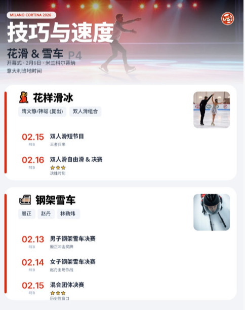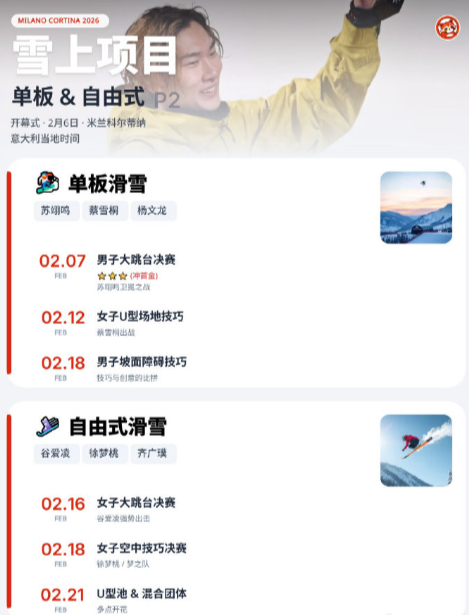 从温哥华到米兰,十六载风雪兼程,徐梦桃、齐广璞、蔡雪桐、刘佳宇四位老将共同铸就五战冬奥的传奇。他们以热爱对抗岁月,以坚持书写传承,成为中国冰雪首批跨越五届的运动员。大家可以根据下图参考时间进行观赛哦!