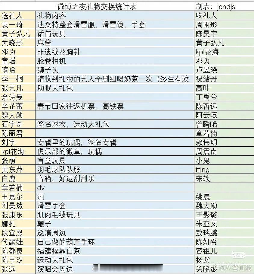 微博之夜交换礼物环节的小表格有的又细心又得体,有的又敷衍又抠门