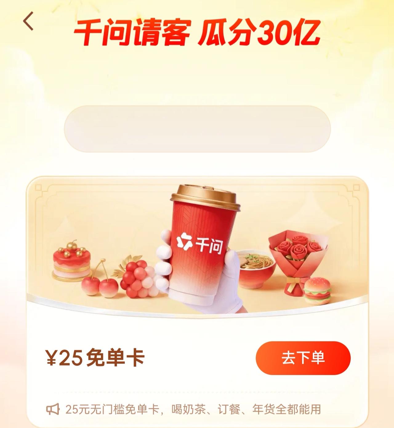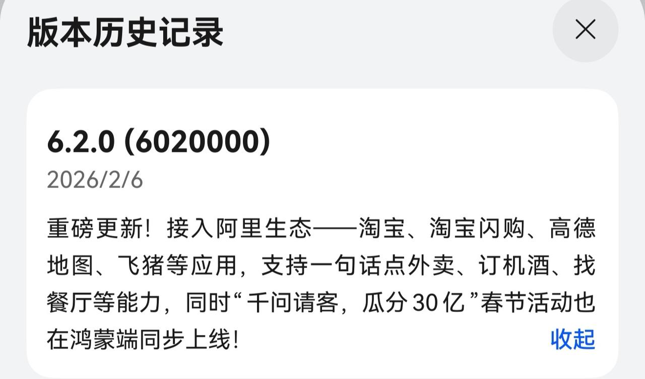 千问分30亿没忘鸿蒙用户! 千问紧急更新了版本,鸿蒙用户也可以点开千问拿奶茶免单卡了[机智] ps:没更新软件的得去客服中心页面找领免单卡的入口。
