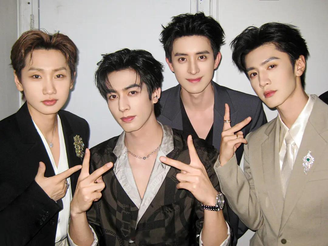 陈哲远、敖瑞鹏、宋威龙、汪苏泷的同框图。这张图几个人都很帅啊。