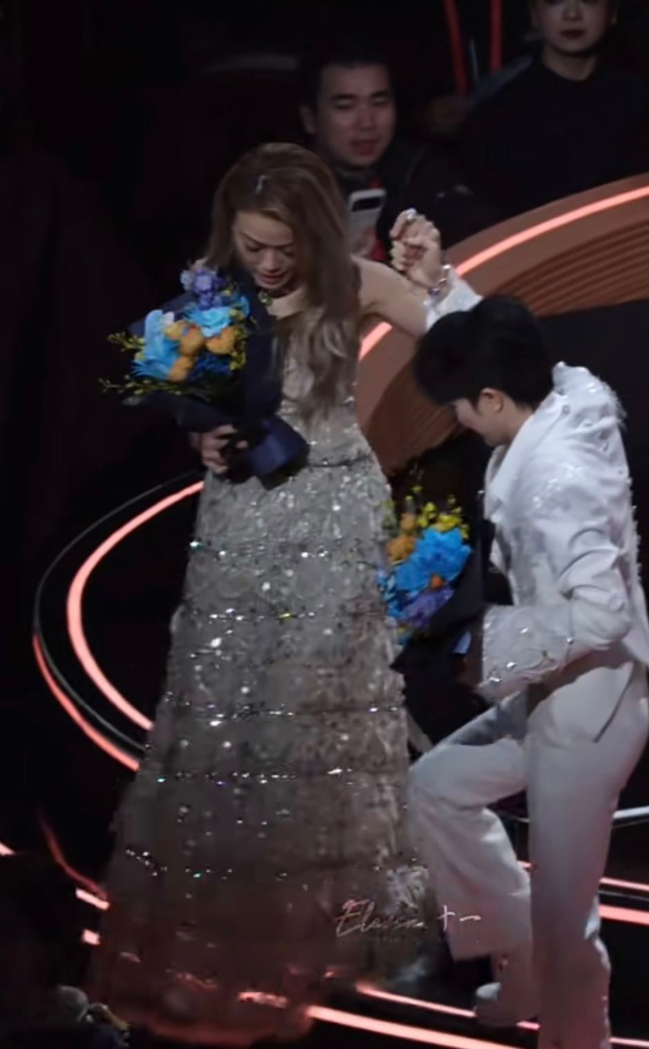 周深扶容祖儿下台阶像打吊瓶 有人把周深扶容祖儿下台阶比作打吊瓶,绝了。周深扶得轻柔又礼貌,这新奇比喻却让画面瞬间搞笑起来,魔性得忍不住笑~🤩
