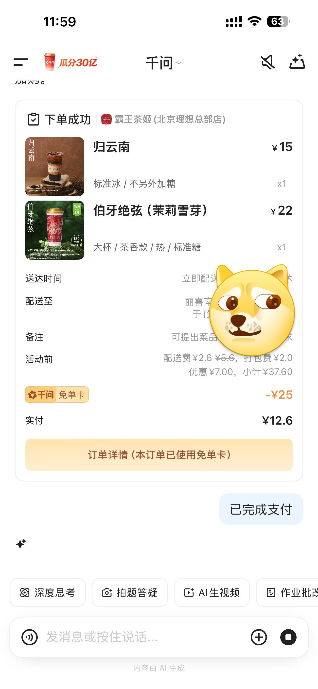 今天全国的霸王茶姬和外卖员都在为AI打工😮💨千问 免费奶茶