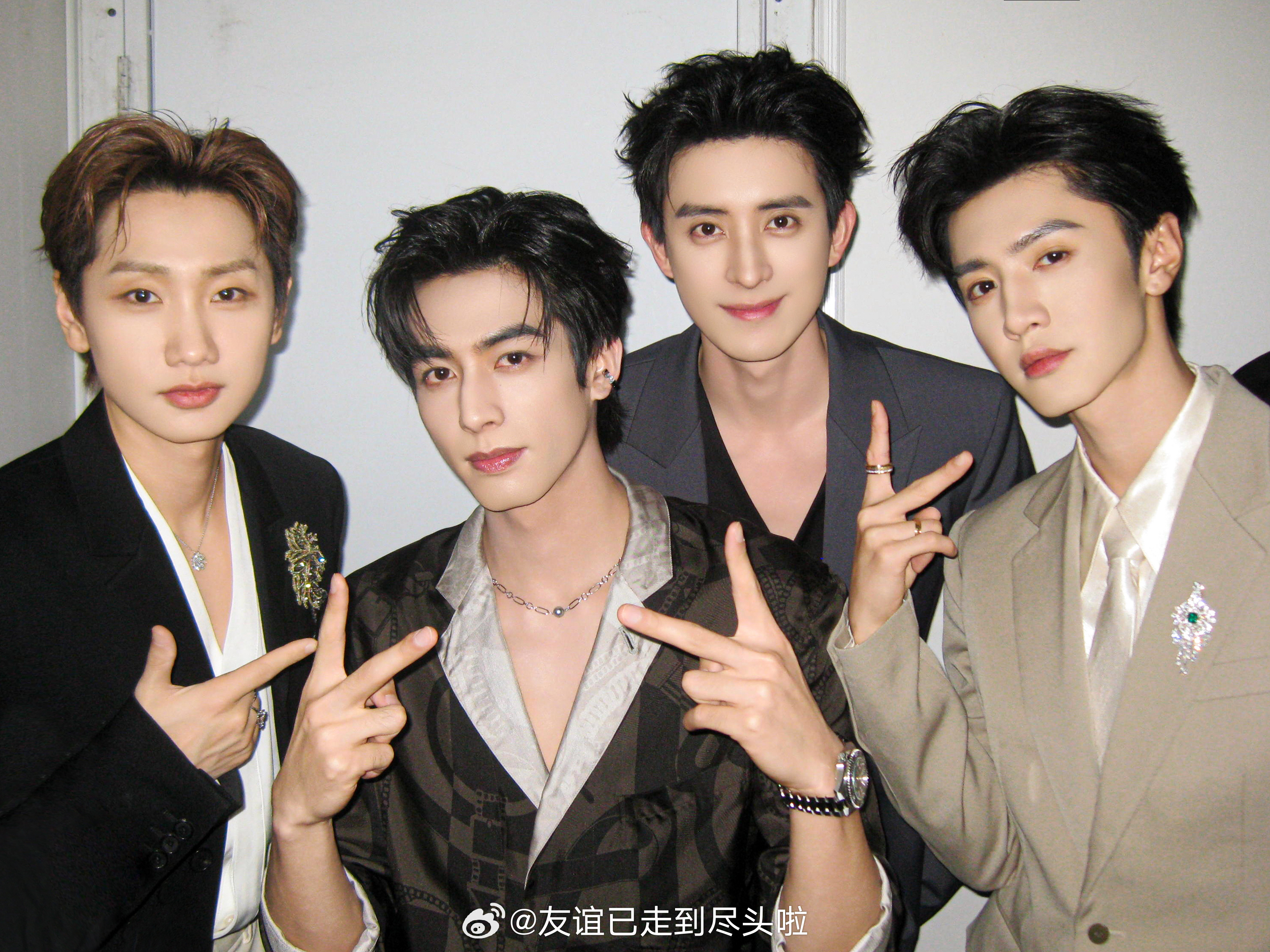 章昊和汪苏泷、王一博、程潇在 微博之夜 后台合影章昊内娱第一课王一博救场