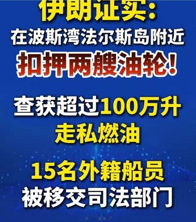 中东伊朗最新局势伊朗伊斯兰革命卫队扣押两艘油轮!近日,伊朗查获超100万升走私燃油看清楚了,这可是“燃油”哦,而且是100万升,厉害了!加油! 专栏 · 中美博弈|俄美博弈|中俄联手|寰球动态