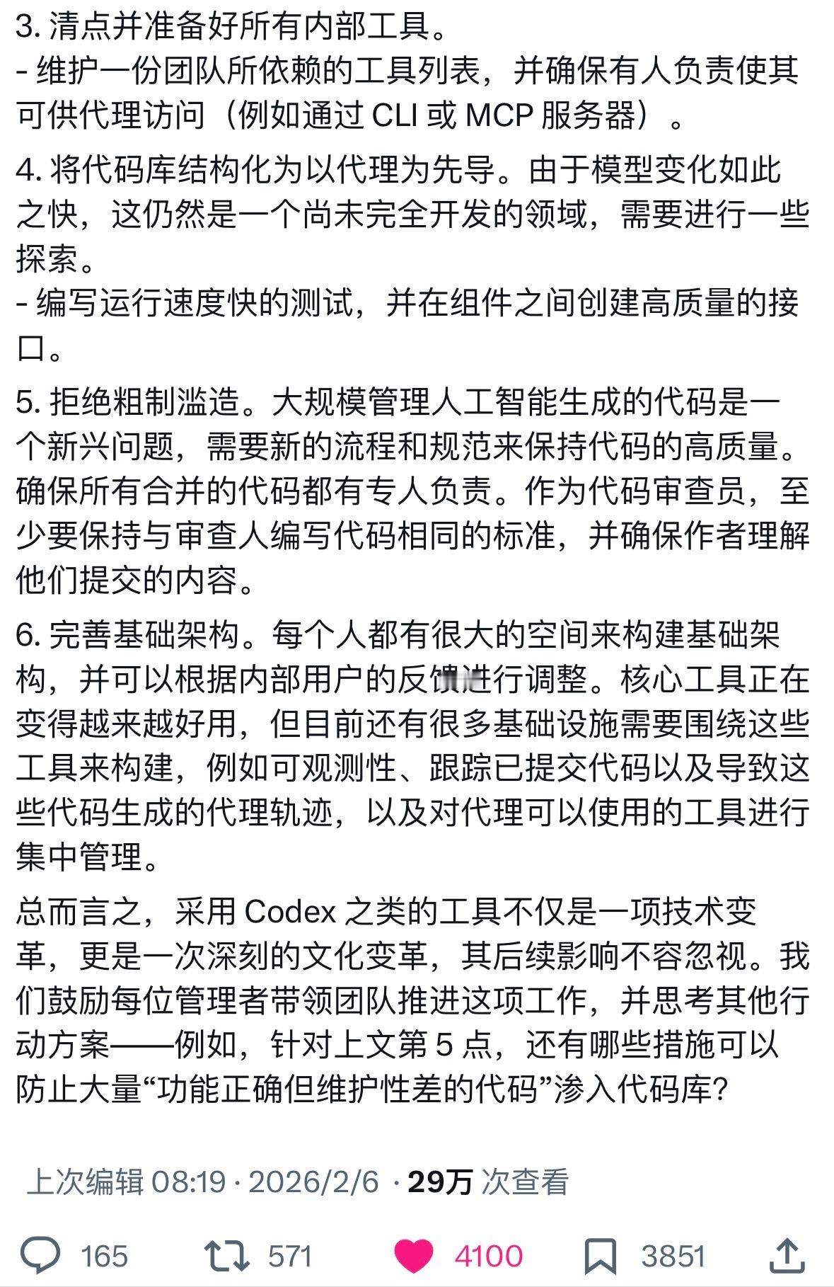 - 使用Codex- 创建skill.md或AGENTS.md- 维护 tools- 代码库 agent-first- 不要制造垃圾- 完善基础架构