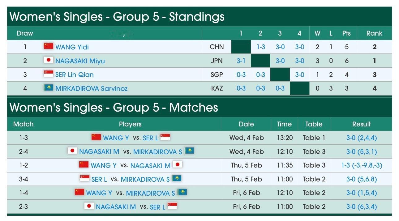 海口亚洲杯女单小组赛第三轮王艺迪3比0米尔卡迪罗娃(11-1,11-5,11-4)王艺迪晋级第二阶段