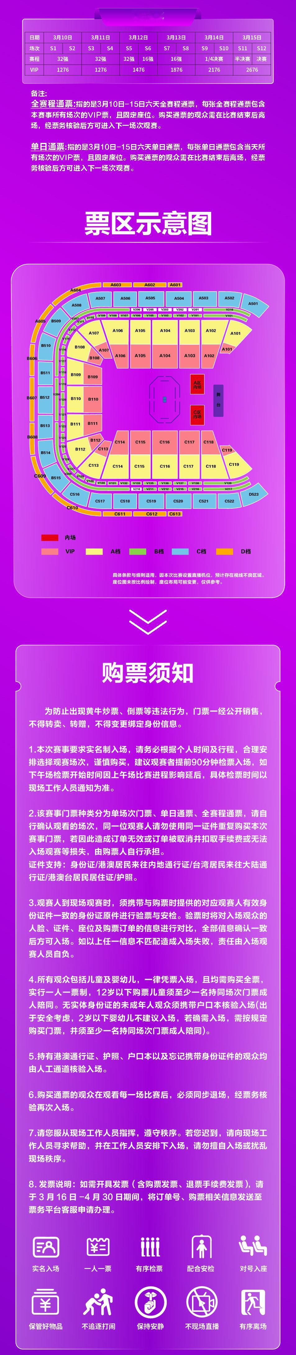WTT重庆冠军赛2026门票将于2026年2月9日正式开启首次售票,其中14点18分开启单日通/全赛程通票销售,14点38分开启单场次门票销售。