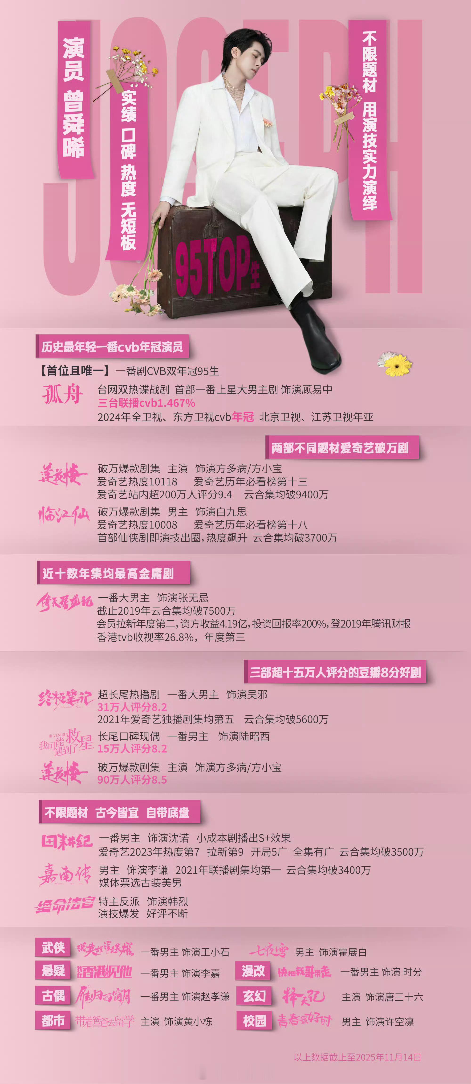 曾舜晞稳扎稳打真实绩,绝对是实力派演员,靠作品说话,爱奇艺破万男主和卫视cvb年冠王,期待曾舜晞所有待播作品