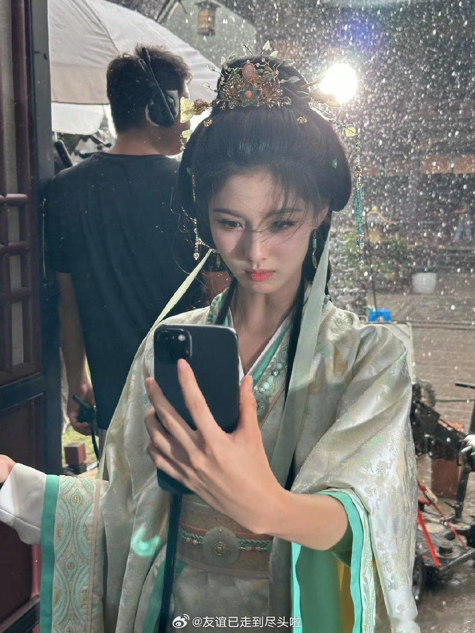 张天爱跟素人合影,胯真的好宽,大宅院似的