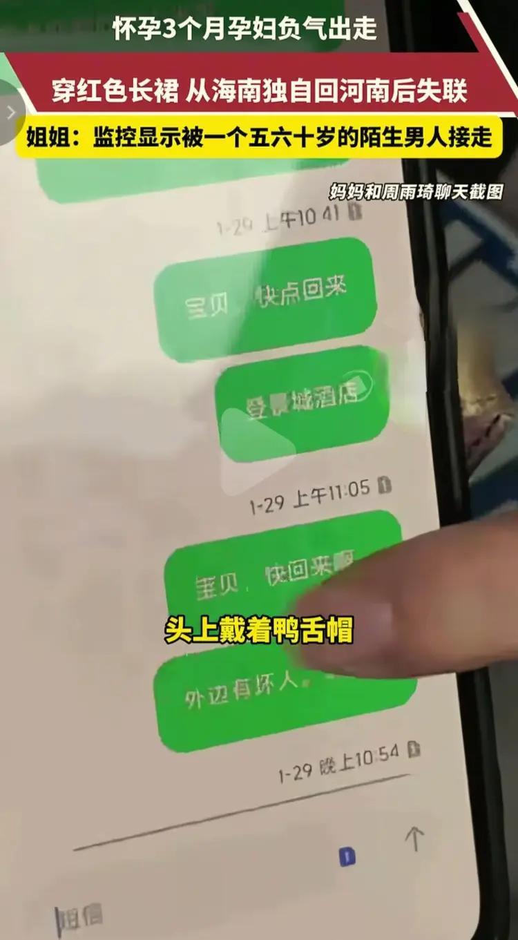怪了?女子怀孕3个月在海南旅游时和家人吵架,赌气一人回郑州,家人找不到她只好报警,警方发现,女子衣着单薄到了机场,一50岁戴鸭舌帽男子出现,她主动跟着上了车,从此消失,再无消息,奇怪的是,女子家人根本不认识那男的。 事发的时候,正是海南最舒服的季节,气温维持在二十多度,暖烘烘的。 可郑州却正是寒冬腊月,气温低到零下,这种南北气候的巨大反差,后来也成了警方排查时的一个关键细节。 女子今年26岁,从出生起就一直待在郑州,性格内向得厉害。 平时除了上班,几乎所有时间都待在家里,不喜欢社交。 甚至很少和邻居说话,更别提和陌生男子来往,还是一个比她大了二十多岁的男人。 这次去海南旅游,一开始一切都好好的,一家人说说笑笑,还拍了不少合照。 可没想到,就在旅游快要结束的前一天,因为一点小事,他们突然吵了起来,谁都没控制住脾气。 吵架之后,不管家人怎么劝,怎么道歉,她都不肯开口。 家人以为,她只是一时赌气,等气消了就好了。 可令人意外的是,女子竟然趁着家人不注意,偷偷收拾了简单的行李,一个人离开了酒店,买了回郑州的机票。 手机也放在床头,没有带走,显然是故意不想让家人联系到她。 警方的监控画面显示,女子穿着一身单薄的浅色卫衣和牛仔裤,身上没有带任何厚重的衣物。 根据监控记录,女子是当天下午独自抵达机场的,没有同行的人,只背着一个小小的双肩包。 再加上新郑国际机场每天的客流量极大,监控录像数量繁多。 警方抽调了多名工作人员,24小时连轴转,一点点梳理,不断寻找女子的踪迹。 恰在此时,一位神秘男子的现身,瞬间令整件事情变得错综复杂、扑朔迷离起来。 监控画面里的男子,大约50岁左右,他没有四处张望,而是径直走到了女子面前,停下了脚步。 让人感到反常的是,女子看到这个陌生男子的时候,没有丝毫的警惕和害怕,也没有询问对方是谁,反而像是早就认识他一样。 两人说了几句话,女子听完之后,点了点头,主动跟着男子,朝着机场停车场的方向走去。 警方根据监控里的车牌号,立刻展开了排查。 可让人没想到的是,这辆车的车牌号是伪造的,根本查不到任何有效的车主信息。 显然是男子早就做好了准备,刻意隐藏了自己的身份。 女子的家人得知这一消息后,彻底崩溃了。 女子的妈妈反复跟警方强调,女儿性格内向,社交圈极其简单,不可能认识一个50岁左右的陌生男子,更不可能主动跟着上车。 警方也觉得这件事十分反常,因为男子刻意伪造车牌号,帽檐压得很低,隐藏自己的身份,显然是有备而来。 可几天过去了,没有任何人打来电话,也没有任何关于女子的消息。 他们找了一遍又一遍,依旧一无所获,眼里的希望,一点点变成了绝望。 这件事在网上曝光后,迅速引发了网友的热议,大家纷纷猜测女子的去向,还有那个神秘男子的身份。 网友们还发现了很多细节上的矛盾点,比如她离开的时候,直接啥也没带,显然不像是有预谋的出走。 再比如,她衣着单薄,根本不适应郑州的严寒,不可能长时间在外停留。 直到现在,这件事依旧没有任何进展。 女子已经失踪了很多天,没有任何消息,没有人知道她现在在哪里,过得好不好。 这位年轻女子,一夜之间突然消失,未留下丝毫踪迹。 只留下了诸多未解之谜,也让家人陷入了痛苦忧思之中。 临近年关,一家人忙忙碌碌之中发生点口角很正常,再有冲突也总能说开。 但是一定不要头脑一热就赌气和家人失联,很容易产生无法挽回的后果。 也希望这位女子能够平平安安,早日与家人团聚,一家人高高兴兴地过个好年。 信源:济报鲁中2026-02-05郑州一孕妇海南负气出走 返机被50岁陌生男子接走失联 更多细节曝光