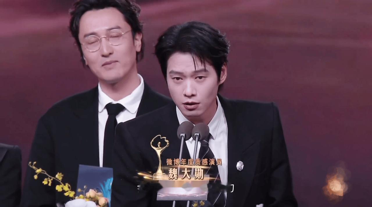 魏大勋 情商魏大勋昨晚在微博之夜获得“年度质感演员”荣誉,发言:“新的一年会继续努力,争取多上热搜,好的热搜啊”,情商真的很高啊