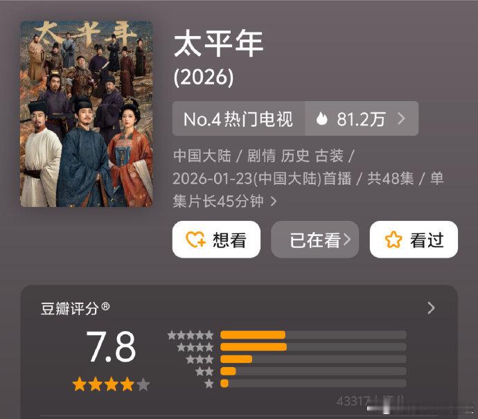 太平年开分了白宇周雨彤太平年豆瓣开分 豆瓣开分见真章,《太平年》以匠心致初心,白宇周雨彤携手实力派阵容,还原“纳土归宋”的壮阔史诗,每一份好评都实至名归