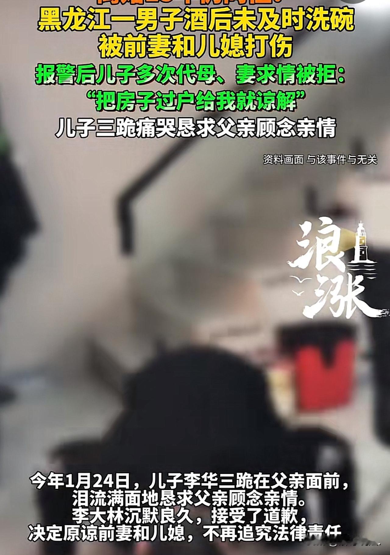 “这一跪,挽回了亲情!”黑龙江,男子和前妻离婚后仍生活在一起,但从儿媳生了孩子以后,前妻就搬过去帮忙带孩子了。一日,男子去儿子家看孙子,到儿子家,心情愉悦,就独自喝起酒来,酒后,未收拾碗筷,儿媳妇看下去,就数落了他几句,接着双方就发生了争吵。前妻闻声赶来,不分青红皂白的,就开始对男子动手。事后,儿子向父亲下跪,替母亲和妻子求情。男子伤透了心,气愤的说:把当初我买的房子还给我,不然这事就没完!儿子见父亲气没消,连磕三个响头,最终,男子还是心软了,原谅了前妻和儿媳! 李大林和王丽这对夫妻打打闹闹一辈子,15年前,冲动之下两人领了离婚证,但这么多年的感情哪是一纸离婚证,说断就断的,因此,他实际上离婚未离家。 自从儿媳生娃,王丽干脆搬去儿子家帮忙带孙子,本以为是三世同堂,幸福无比,没成想到,因为一件小事,一家人吵翻了天。 去年年底的一天,李大林惦记孙子,买了点东西就往儿子家跑。 到了那儿喝了罐啤酒,吃了点零食,酒足饭饱就往沙发上一坐,悠哉悠哉地歇着了。 可这用过的碗筷就这么摆在桌上,没及时收拾。 儿媳看了心里不舒坦,就忍不住数落了公公几句!。李大林不爱听了,当场就跟儿媳顶了起来。 两人你一言我一语吵得正凶,前妻王丽听见动静也跑了出来,不分青红皂白就朝着李大林骂开了,越骂越激动,伸手就拽住了李大林的衣领。 儿媳见状赶紧上前想拉开两人,可混乱中谁也顾不上分寸,三个人扭打在了一起。 等拉扯开,李大林的前胸已经被抓出了好几道血印子。 60多岁的人了,又气又委屈,当场就报了警。 民警来了之后,看着这一地鸡毛的家庭纠纷也头疼,前后组织了三次调解。 可李大林这回是真较真了,态度强硬得很,坚持要追究前妻和儿媳的责任,还提了个条件: 让儿子将名下两套由他出资购买的房子,过户一套给自己才肯和解。 儿子小李夹在中间可真是难坏了。 一边是受了伤、怒气冲冲的亲爹,一边是自己的媳妇和帮忙带娃的亲妈,哪头都不能偏。父亲提的房产过户要求,他实在没法接受,可又不想看着一家人闹到法庭上,撕破脸皮。 被逼得没办法,小李当着众人的面,“扑通”一声就跪在了父亲面前,眼泪汪汪地哭着求道:“爸,您就原谅妈和媳妇这一回吧,都是一家人,别揪着这事不放了,看在孙子的面子上,顾念点亲情啊!” 这一跪,让原本态度坚决的李大林愣住了。 儿子连着跪了三次,哭得撕心裂肺,句句都是恳求。 李大林沉默了好久,看着儿子通红的眼睛,再想想可爱的孙子,心里的火气慢慢就消了。 毕竟血浓于水,哪有真能记恨家人一辈子的。最终,他叹了口气,接受了儿子的道歉,决定原谅前妻和儿媳! 此事曝光后,网友炸了:前妻和儿媳妇做的不对,买两套房给儿子儿媳妇居住,公公这样的无私换不来儿媳妇关心和照顾,真是人心不足蛇吞象! 公公全额出资买了两套房给了儿子,居然遭到儿媳和妻子的殴打,做人不地道! 《民法典》第1043条规定:家庭应树立优良家风,弘扬家庭美德;夫妻互相忠实、尊重、关爱;家庭成员敬老爱幼、互相帮助,维护平等和睦文明的婚姻家庭关系。 公公不拘小节没收拾碗筷,确实有不妥之处,但儿媳当面直接数落,终究失了晚辈对长辈的分寸,即便长辈有小过,晚辈也该顾及体面、委婉沟通。 前妻更是糊涂,不分青红皂白就动手,硬生生把鸡毛蒜皮的小事闹成了难收场的僵局。 好在,儿子小李的下跪求情,一跪唤回了父亲的理智,也护住了一家人的体面。 亲情里本就没有绝对的对错,更多的是愿意低头的包容与体谅,小李这一跪,实实在在挽回了濒临破裂的亲情。