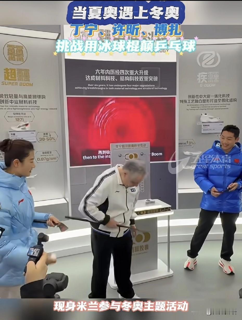 许昕又闪现米兰了。 前些天许昕和姚彦一起去了澳大利亚,两个人在那里玩的挺开心,这是澳网之旅结束,就又去米兰了,这次应该是工作吧,还看到丁宁了。许昕和丁宁助力中国冰雪中国运动员闪耀世界,许昕在米兰冬奥会中国之家体验冰壶运动,上手非常快,果然有运动天赋,许昕还是太全面了。 许昕和丁宁一起参加活动,他们俩和博扎还挑战用冰球棍颠乒乓球,许昕还给自己增加难度。不知道这次去米兰,许昕带着姚彦没,这几天没有看到姚彦更新动态呢,在澳大利亚那几天姚彦发了很多旅行照,如果姚彦也来米兰,那也和丁宁能聚一聚了。许昕还体验了AI换装,试了一把穿上2026冬奥会领奖服的感觉.。许昕最近生活真的丰富多彩,在上海的时候和马龙一起切磋了网球,和姚彦一起去澳大利亚跳伞,两口子还一起看澳网的比赛,这十多天都是在国外度过的。 许昕的工作比较忙,也没时间来解说亚洲杯的比赛了,其实还是更喜欢许昕解说比赛。