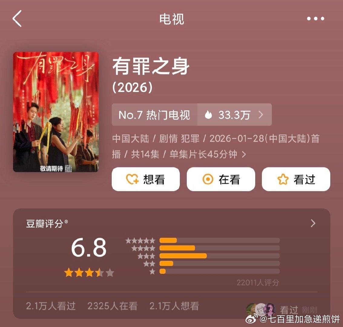 魏大勋、孙千《有罪之身》开分6.8 ,2.2w人打分