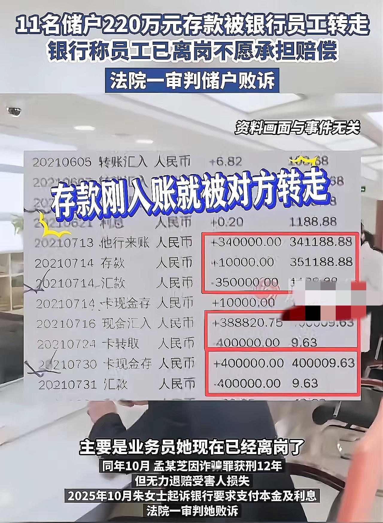 存了银行的钱被职工转走,不管他现在在不在岗,存钱的时候他都属于银行的职工,现在钱没了,银行必须要负这个责任,银行有责任保护好每一个客户的财产安全,这属于连带责任,想抵赖,门都没有!存款被转走 存款消失 离职银行 存银行的钱,如果只是员工负责管理,那要上面领导干嘛,吃干饭的吗?你们定期不做检查吗?任由职工随意支配吗?纯属于工作渎职!所以必须赔偿客户损失!