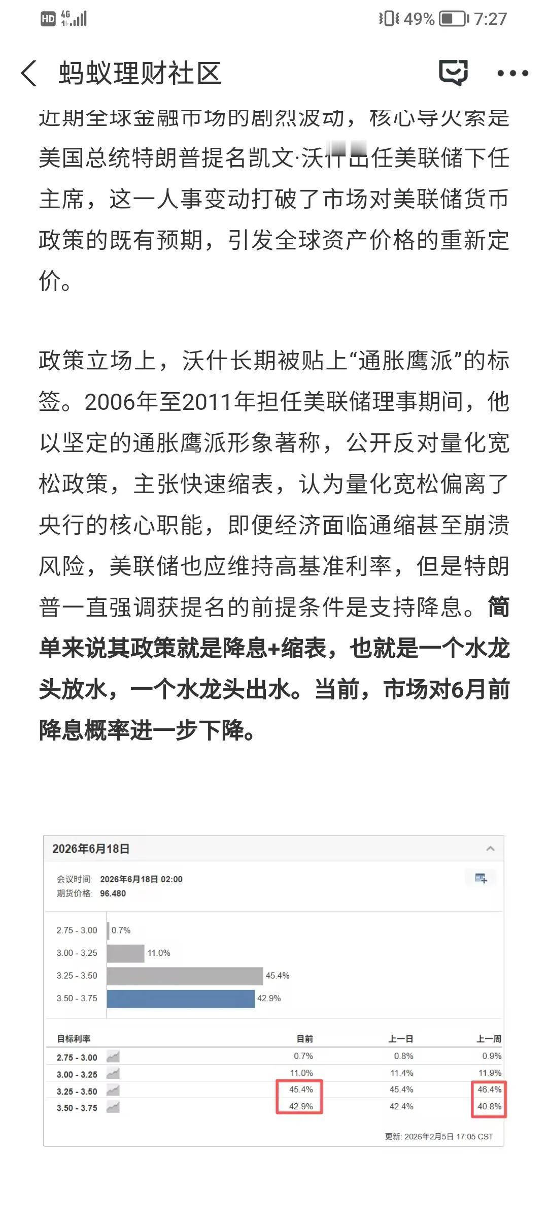 难以操作,头痛,我决定卖出所有股票和基金,保持空仓。如果沃什上任美联储, 作为鹰派代表,他是反对量化宽松政策,又主张快速缩表 ,即以降息+缩表的模式。我看了头都进水,对于未来股市的方向难以把握,说要降息嘛,利好股市,说要缩表嘛,又利空股市,一正一反,没有个确认方向,难以操作股票,我决定空仓。