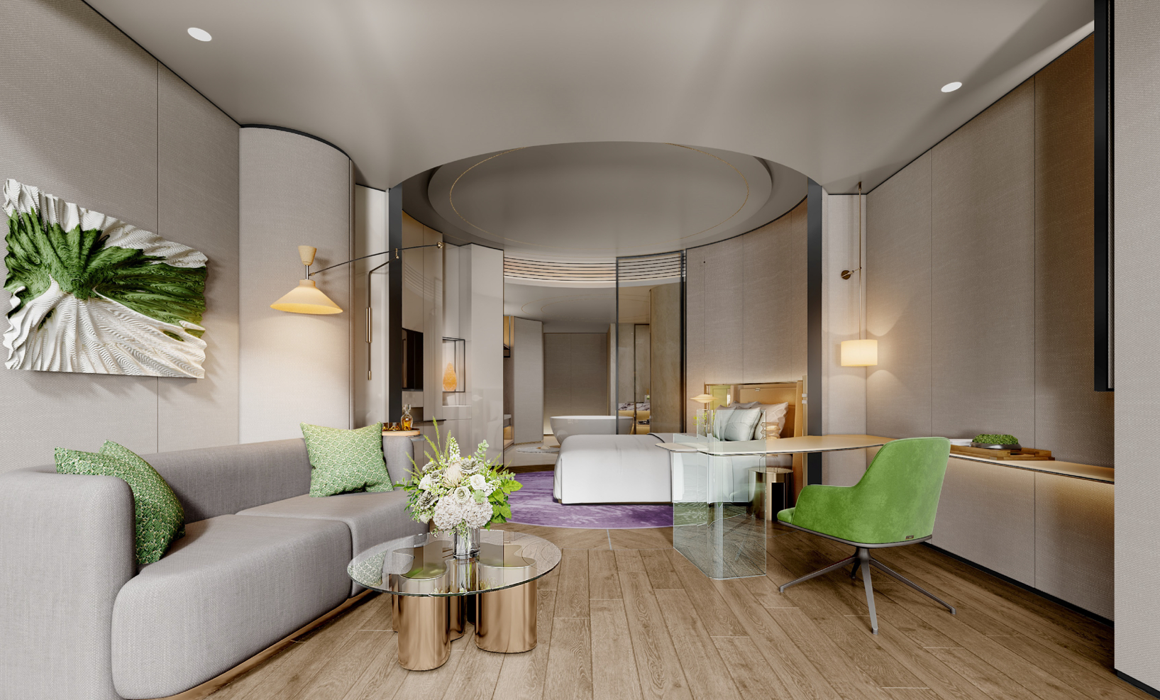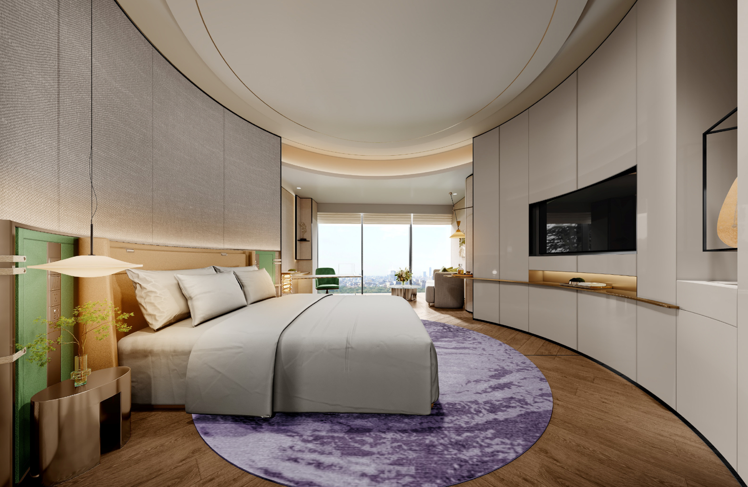「 第一章 · 居停 · 280间绿意客房 」酒店拥有280间雅致客房与套房,设计灵感撷取南洋风韵与盎然绿意,全景落地窗将城市天际线或静谧园景引入室内。每一间客房不仅是休憩之所,更是一个包裹身心的“静谧胶囊”,旨在为旅人提供一处远离喧嚣、安放身心的私密领地。
