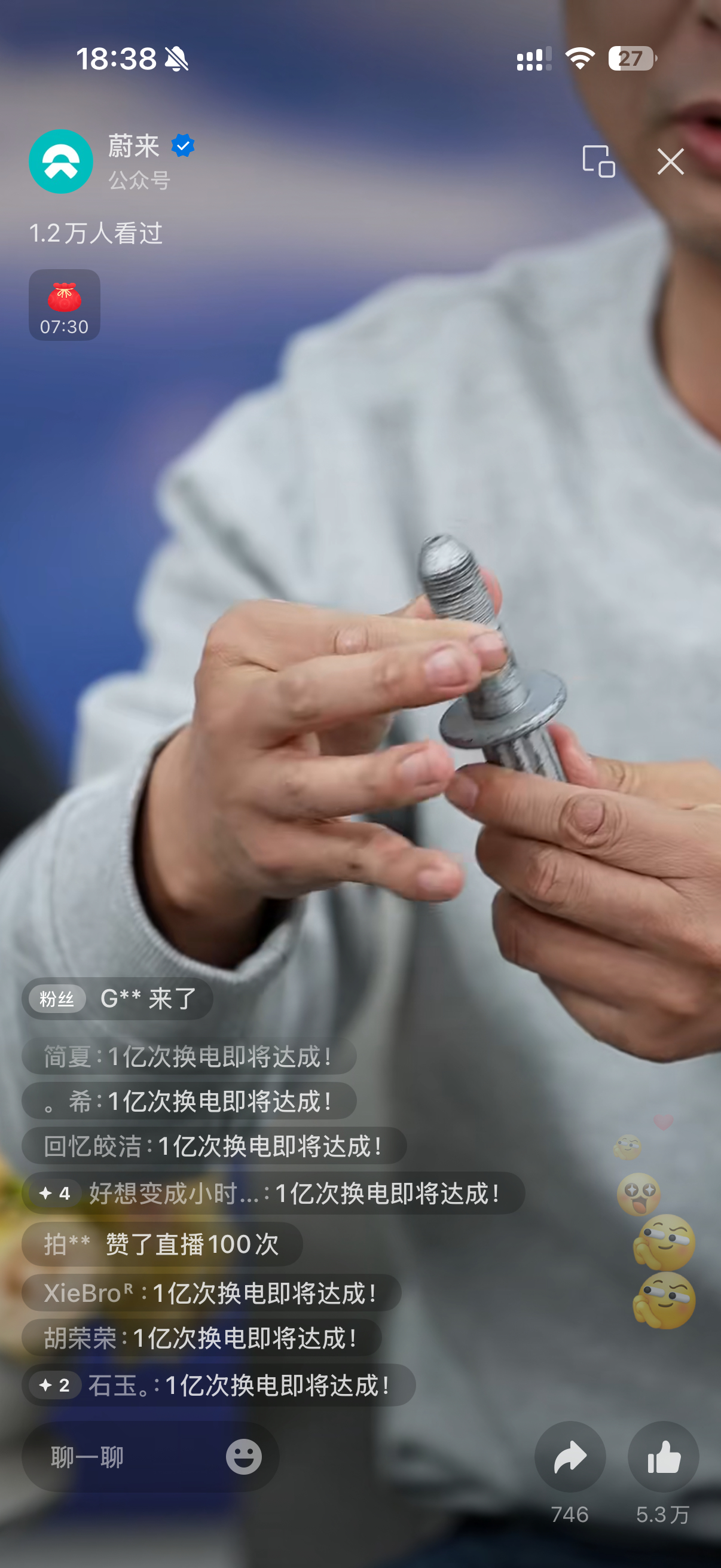 这个1亿次直播还挺有意思,有工程师来讲。现在讲的是这个螺丝,原来之前李斌还提到说用火箭的弹射结构。