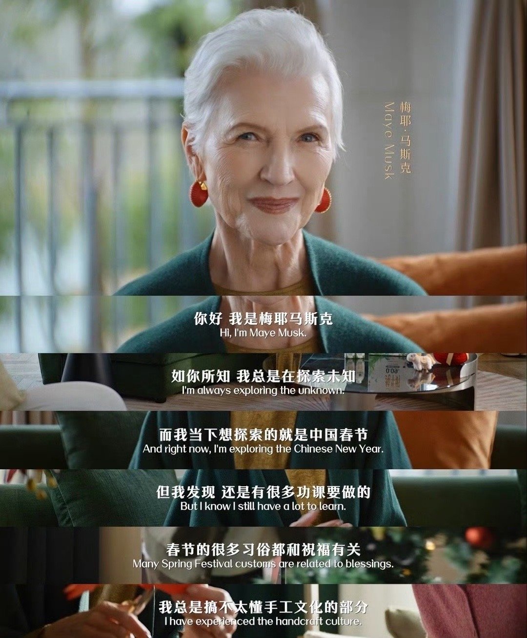 马斯克妈妈沉浸式体验中国年77岁梅耶马斯克玩转中国年仪式感 看她过中国年像看文化小剧场!中式打扮亮眼,研究窗花、包巨饺认真,被成品惊到的反应太真实~